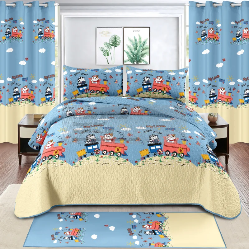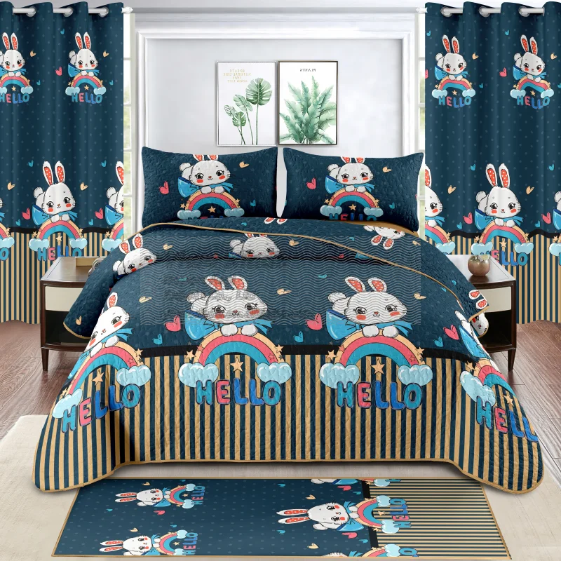 Children's Quilted Bedding Set with Curtains and Floor Mat. Children's Special Bedding Set Including Quilt Cover.
