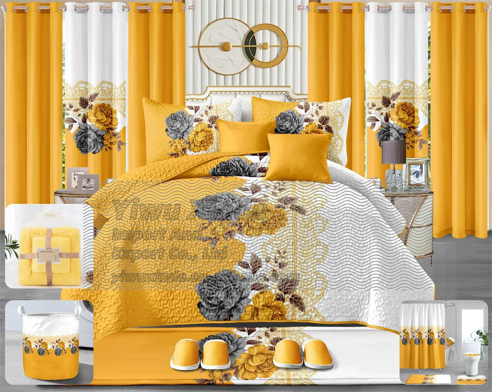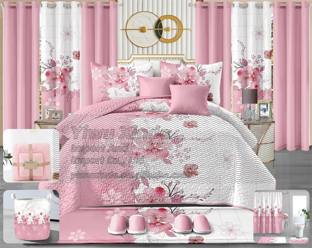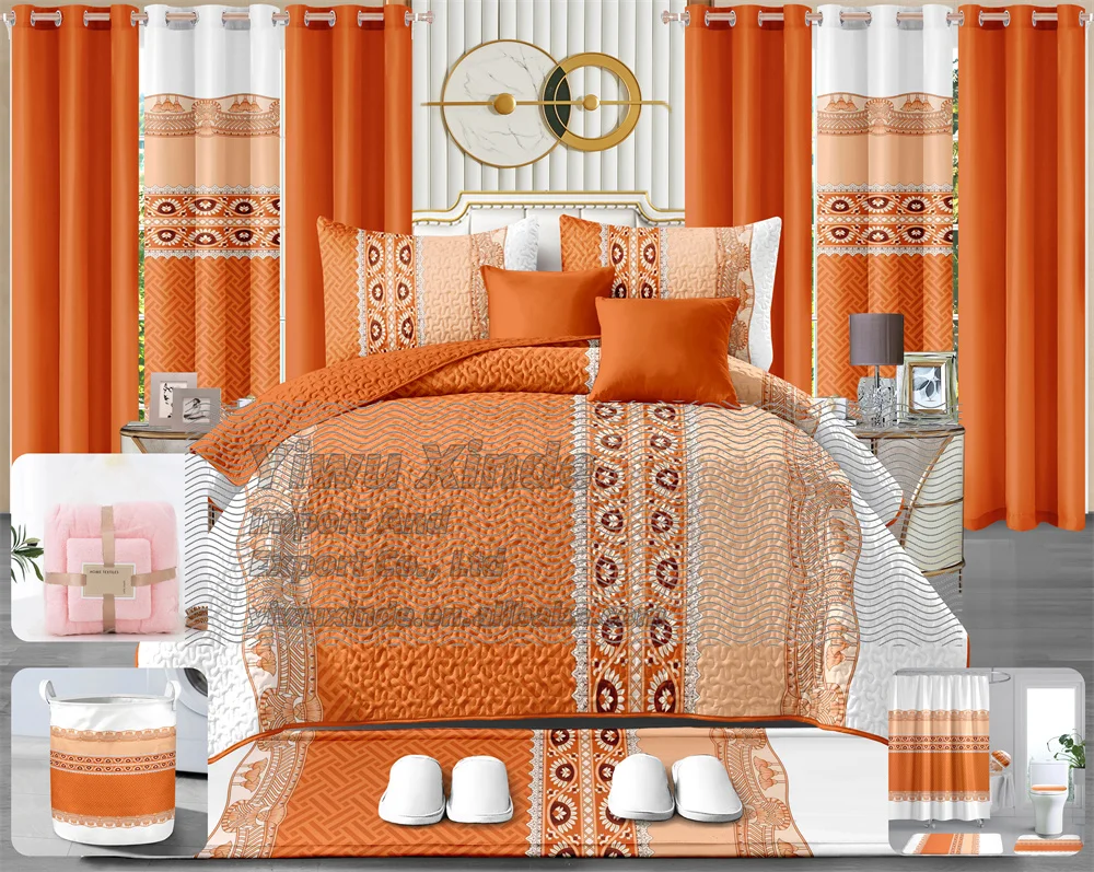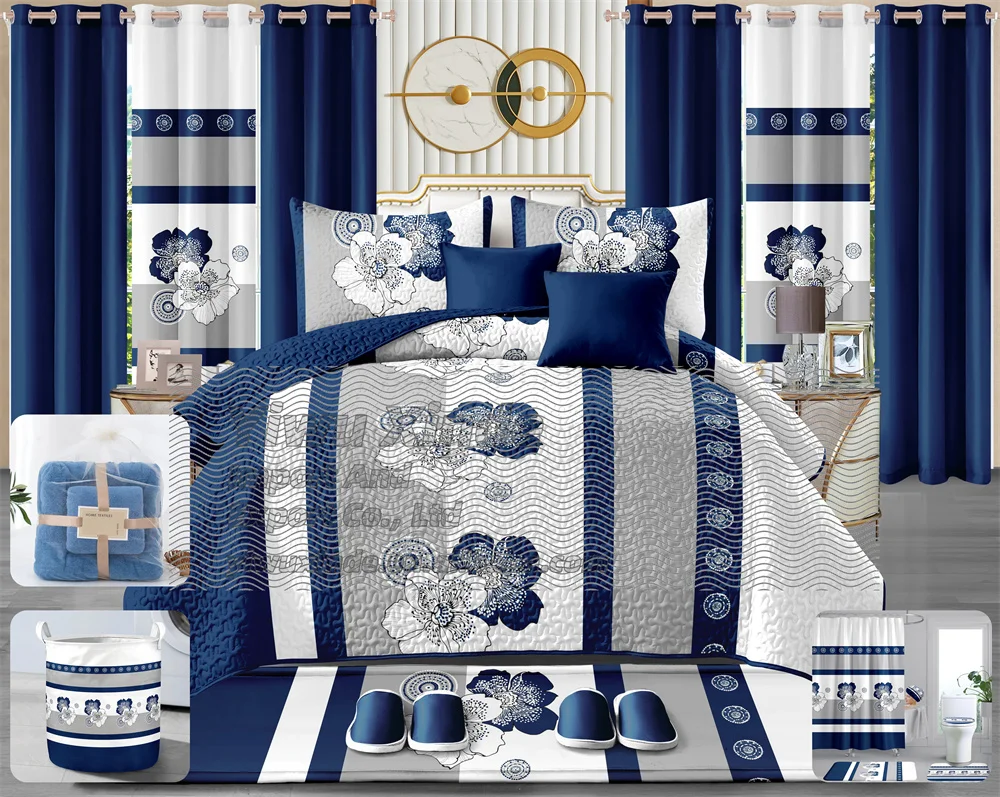 King Size Drop De Lit En Coton Quilt Bedding Set With Curtains 24 Pieces Quilted Bedspread Bathroom Matching 24pcs Bedding Set