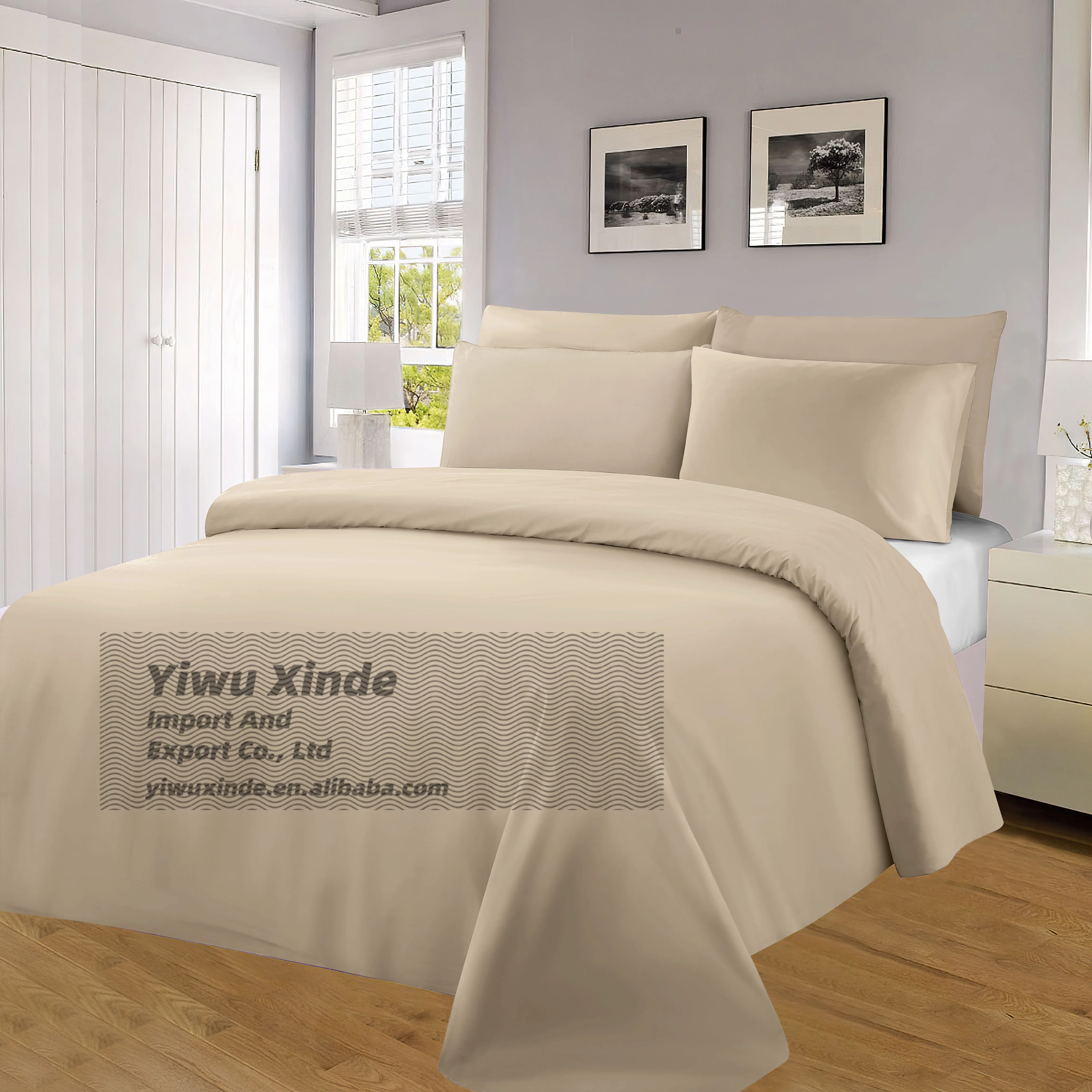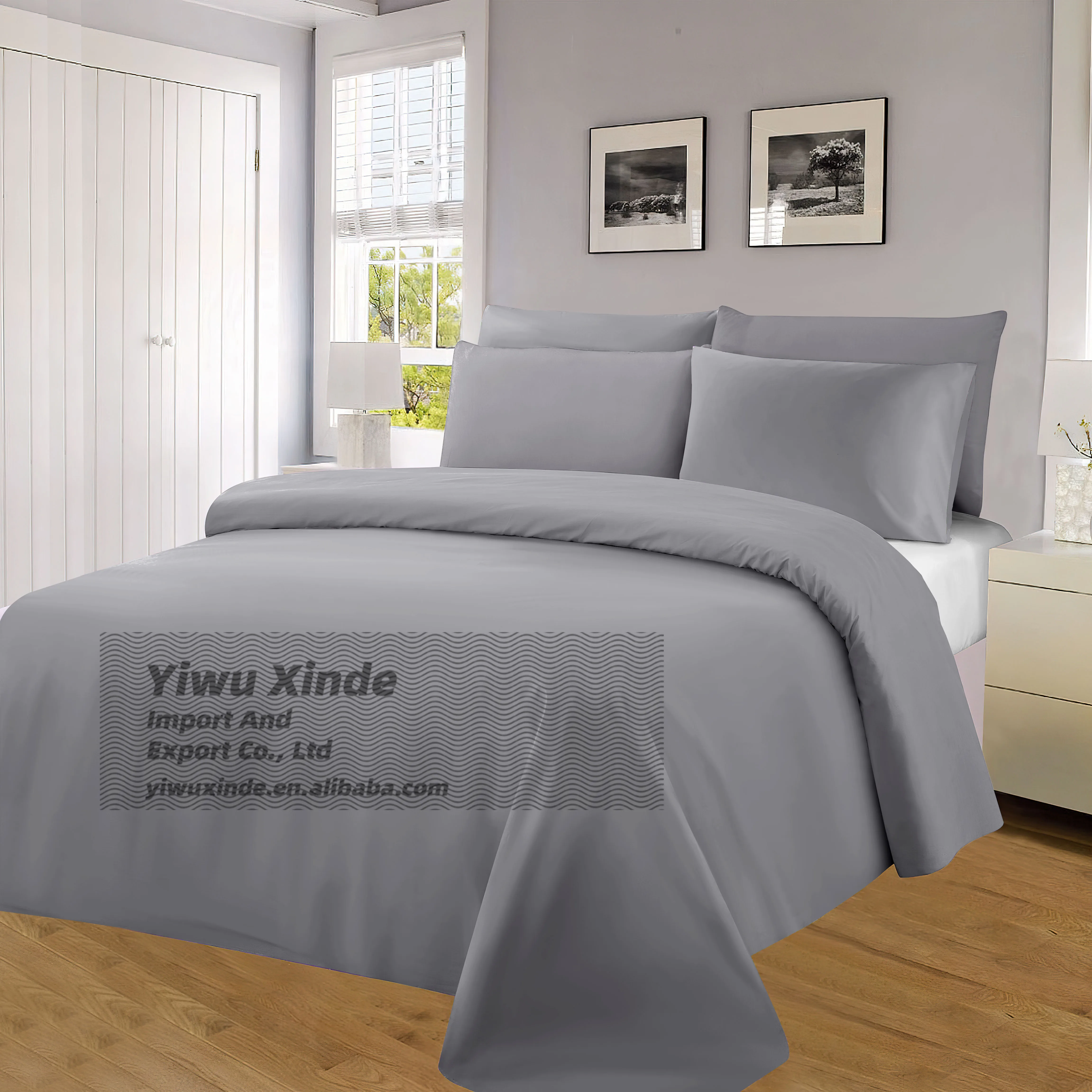 100% Bamboo Fiber Woven Modern Solid Color Bedding Set Super King Size Includes Flat Bed Sheet Fitted Duvet Cover