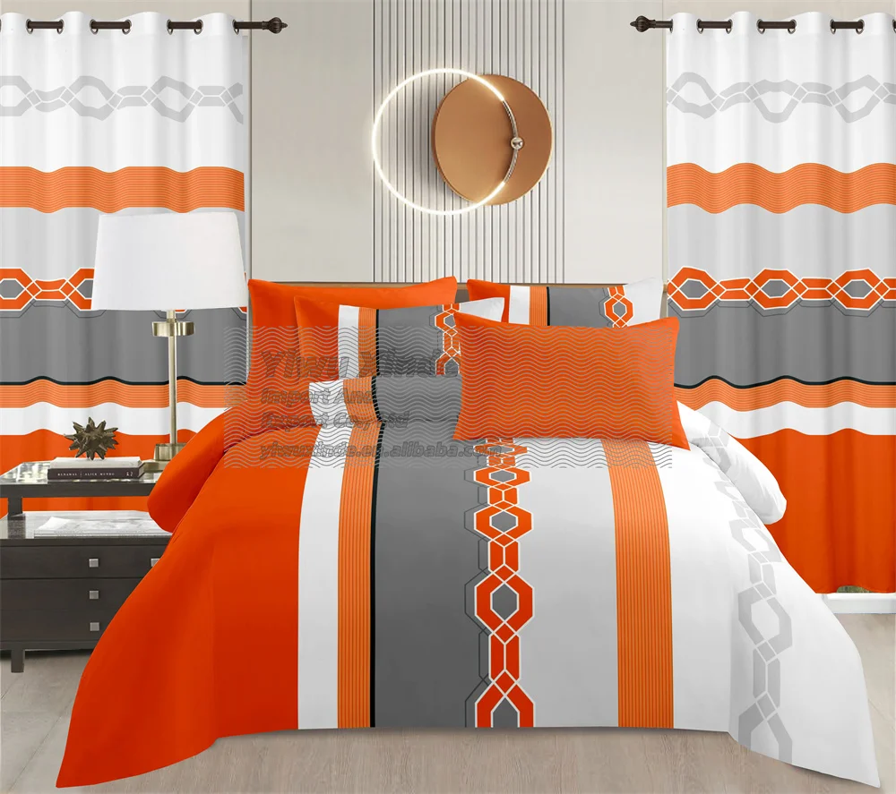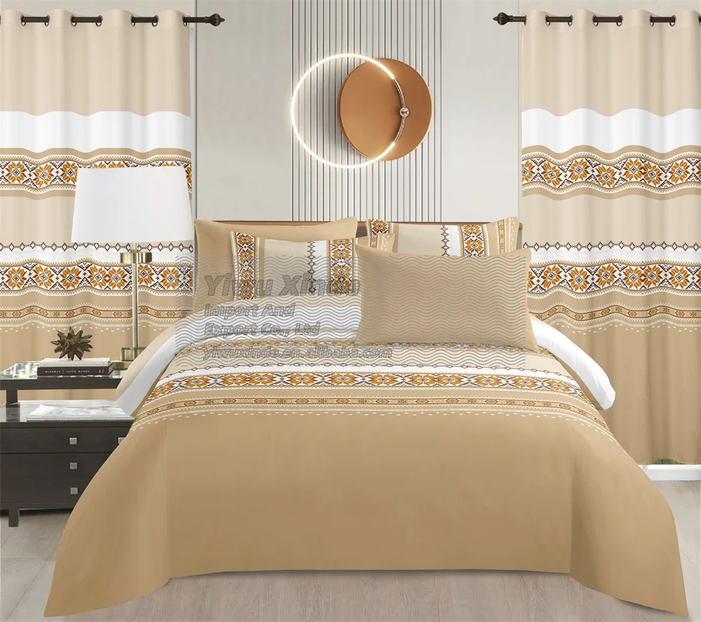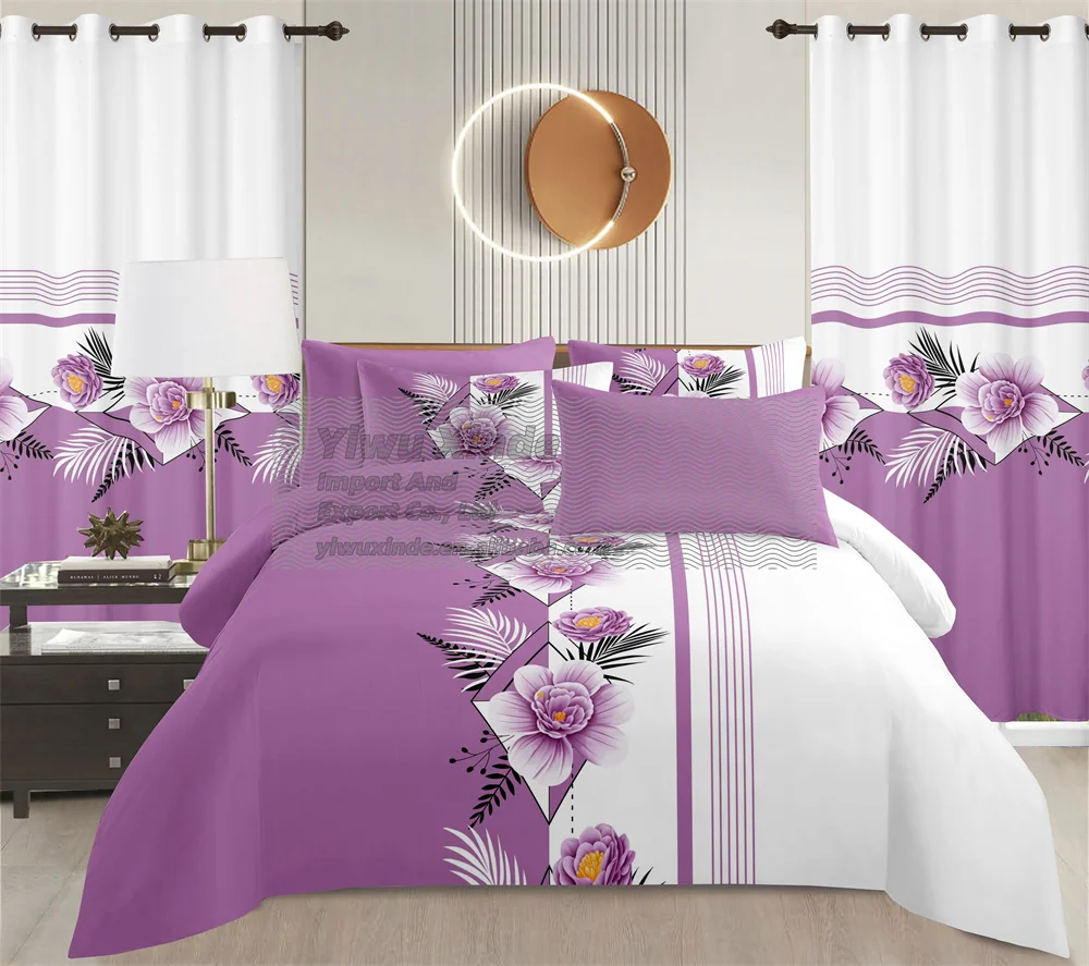 China Manufacture LILIANNA Stock Microfiber Polyester Bedding Set Wholesale Sabanas 8pcs Bedsheet with Curtains