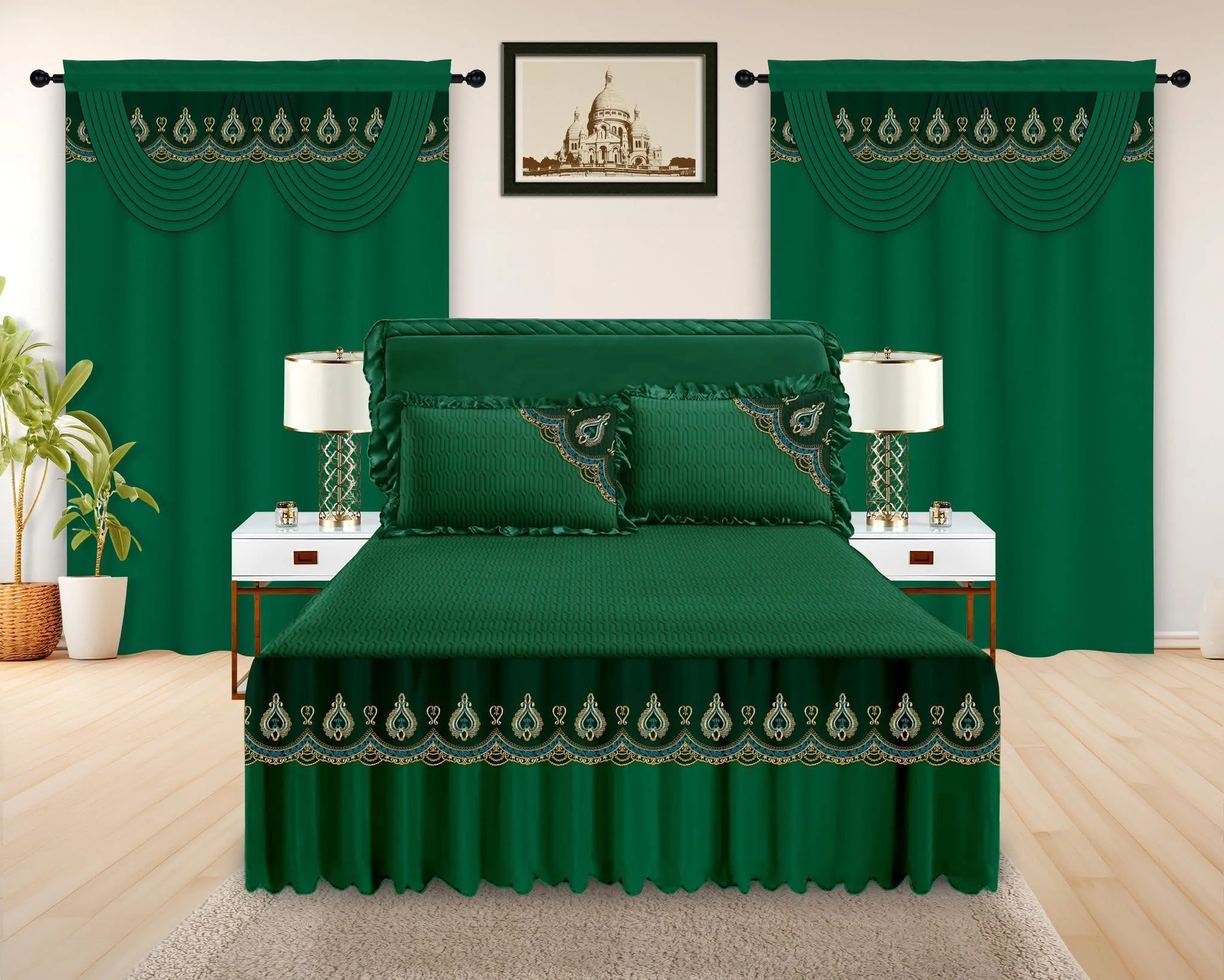 American Florida Hot Pink Color 5 Piece Bed Skirt Set Luxury Lace Embroidery Queen Cal King Size Bedding Set with Curtains