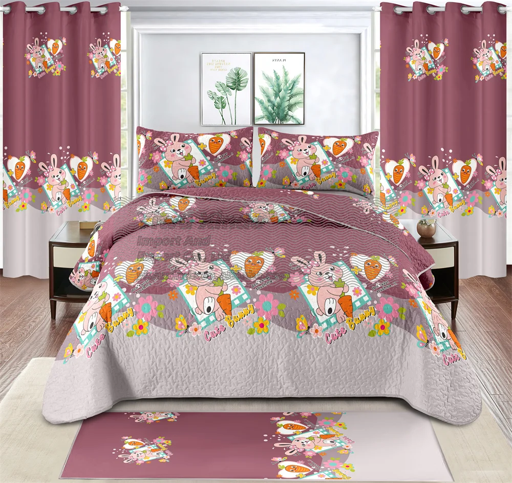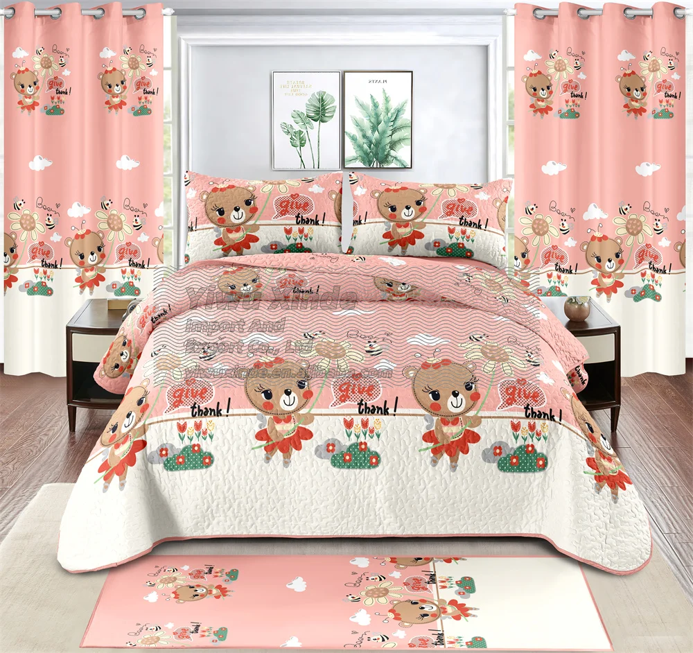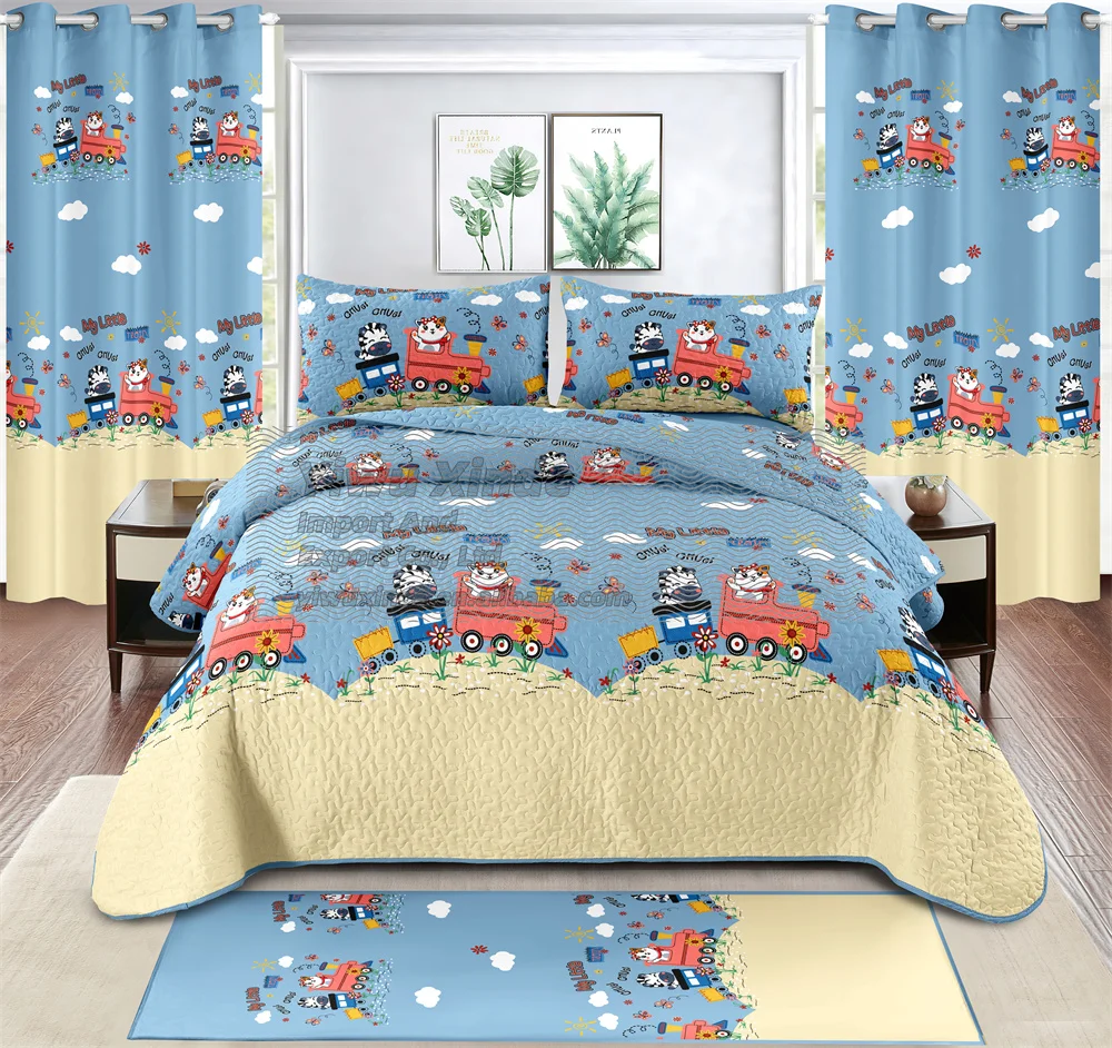Children's Twin Size Bedding Set Kids 7pcs Quilted Bedspread Set with Fitted Sheet Carpet Curtains for Kids Bed
