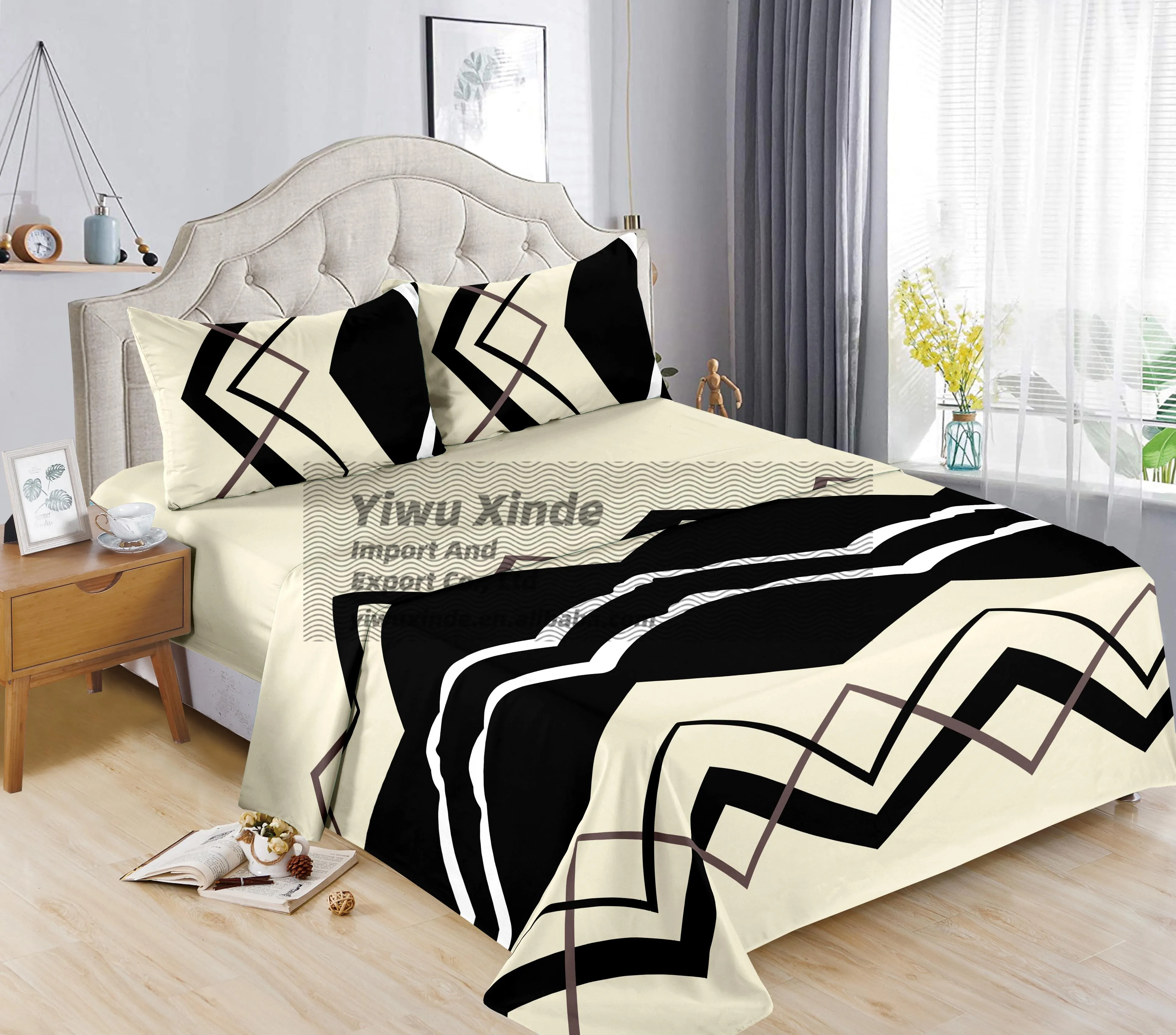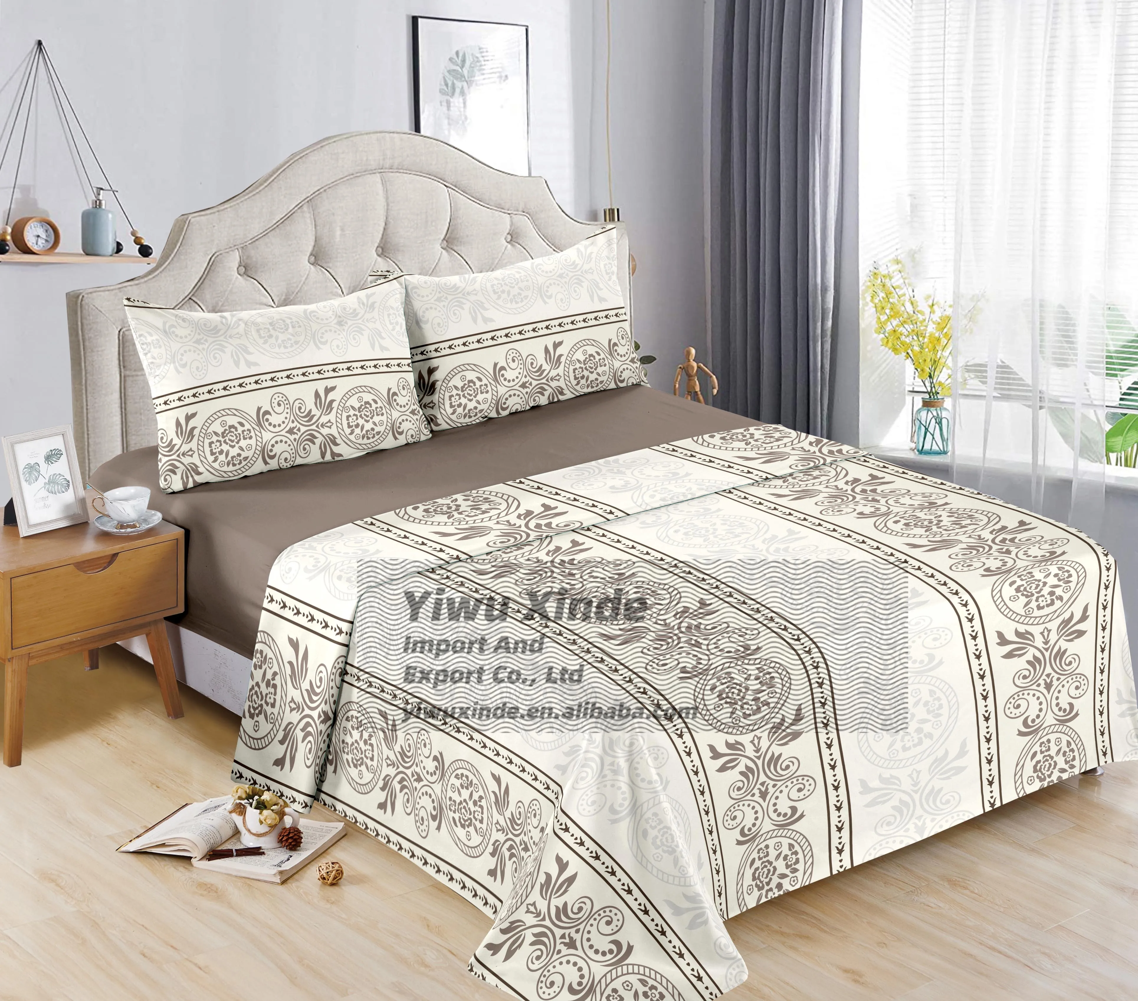 Botanical Print Queen Size Bedding Set 4 Pcs Complete With Flat Sheet Fitted Sheet and Drap for Australian Master Bedroom Decor