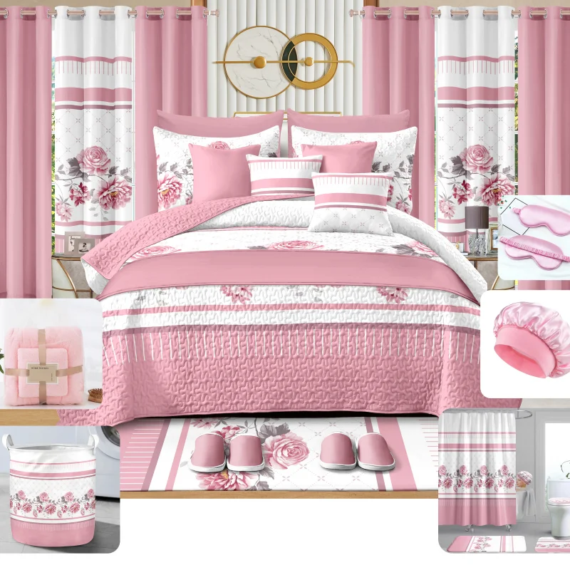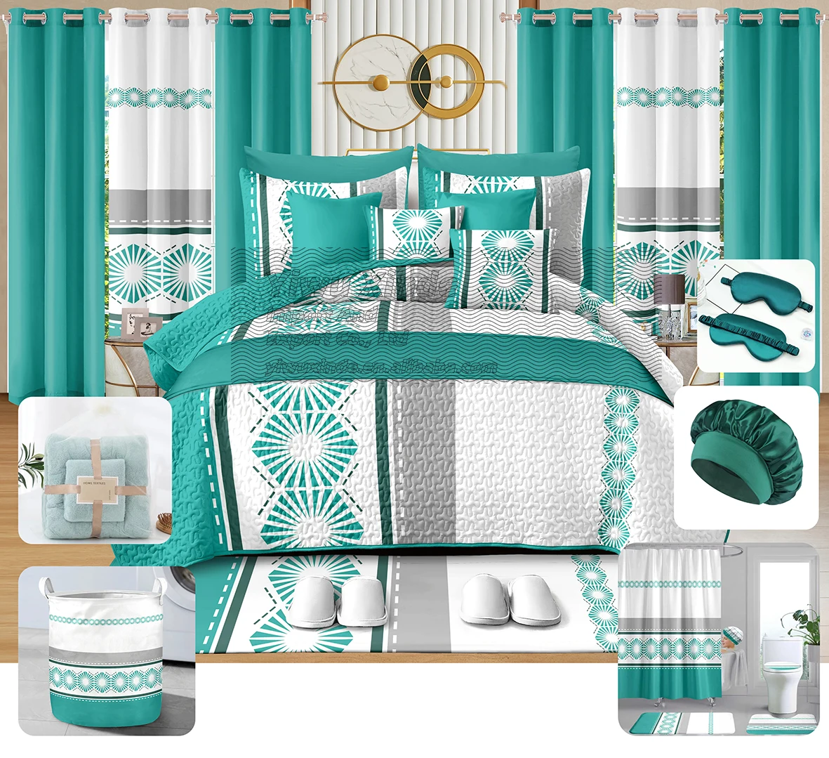Luxury 30 Piece king Size Quality Quilt Set with Curtains Luxury Bedroom Bedding Sets
