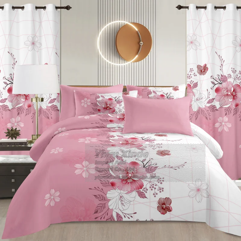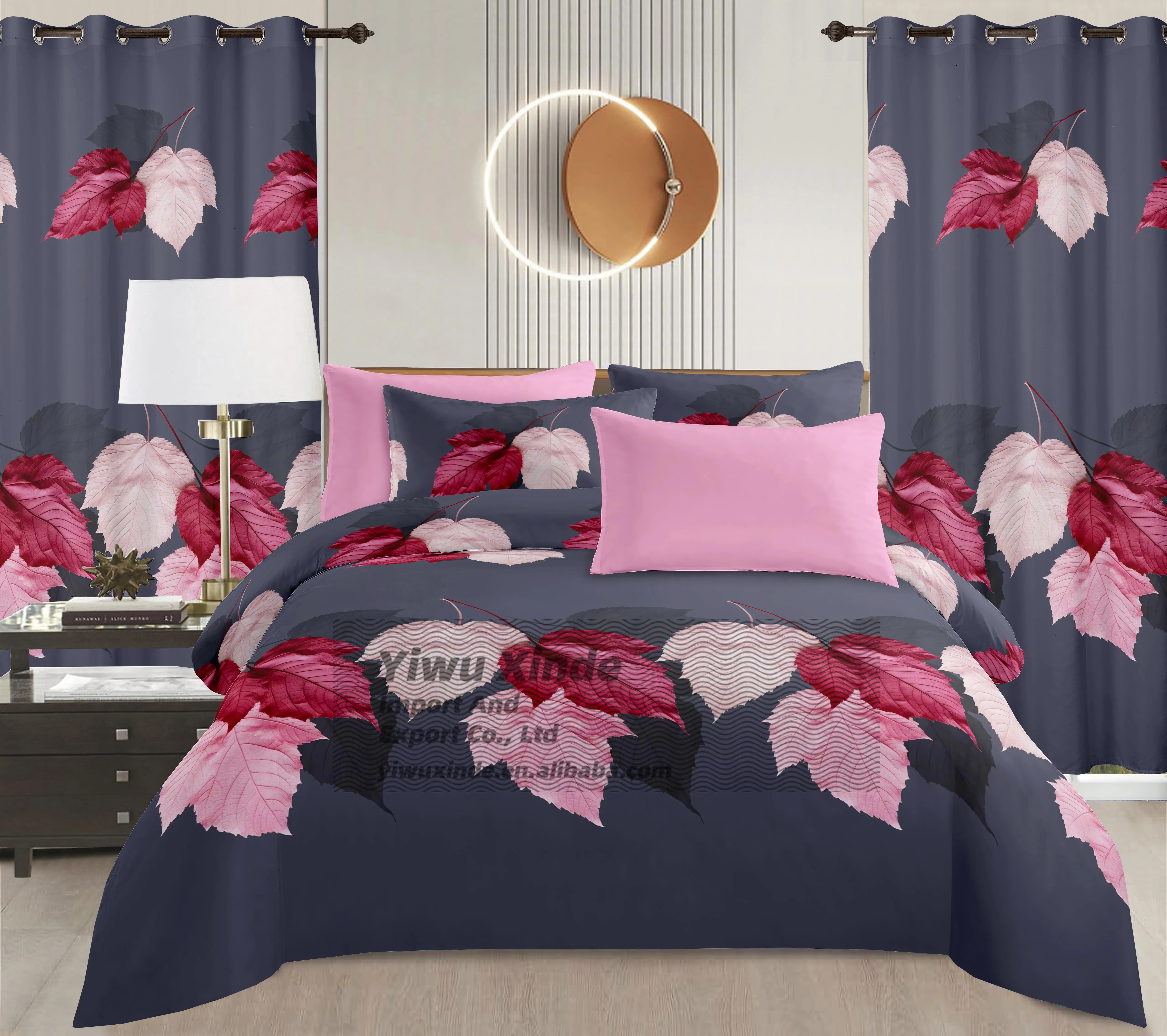 Factory Wholesale Customized New Pattern Bedding Set Red Rose 8 Piece Bed Sheet Set with Curtains for Wedding Bedroom All Season