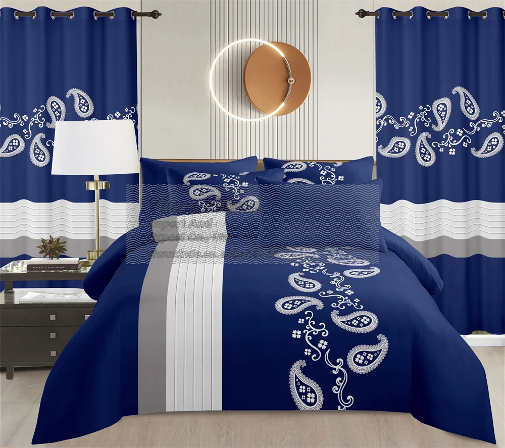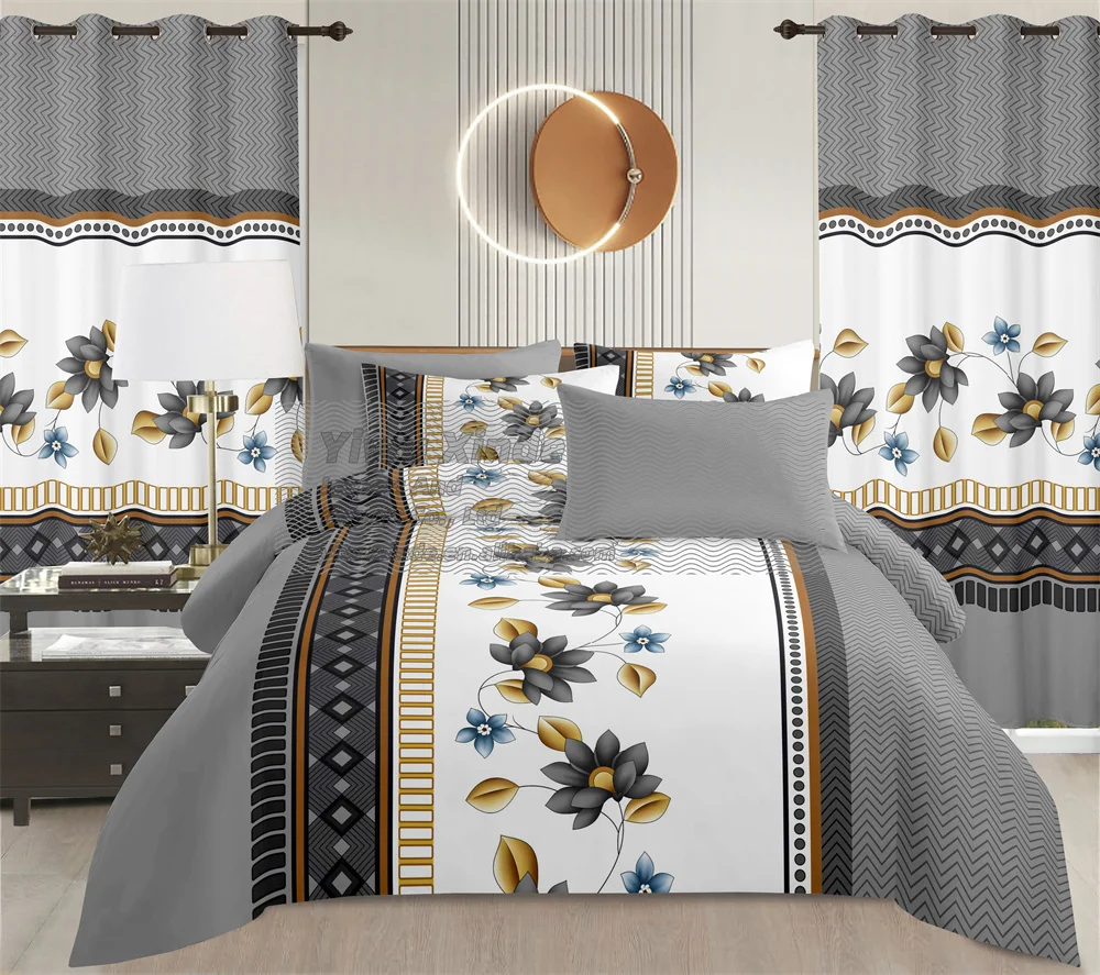 Wholesale Bed Fitted Sheet King Size 8 Pieces Bed Sheet Set with Curtains Bedding Collections Cheap Price