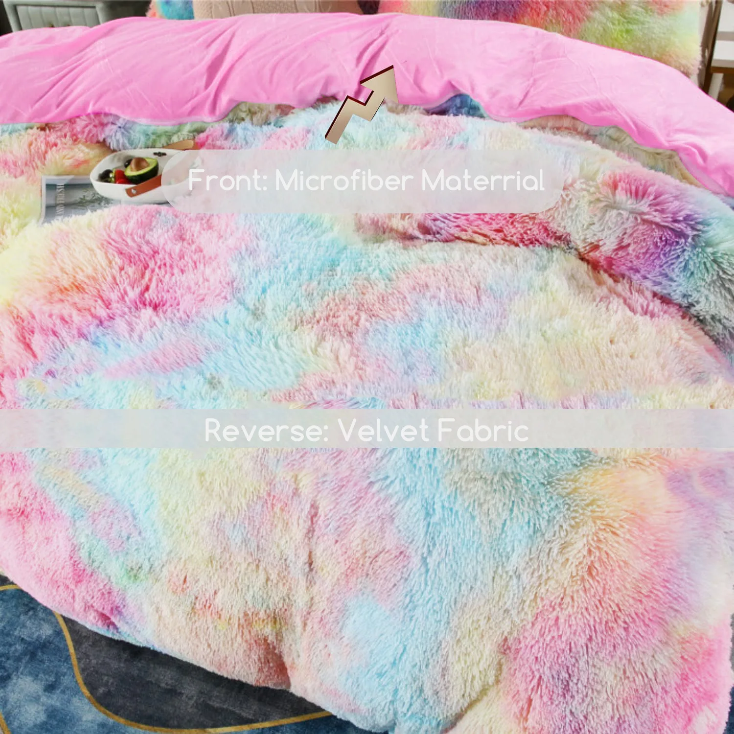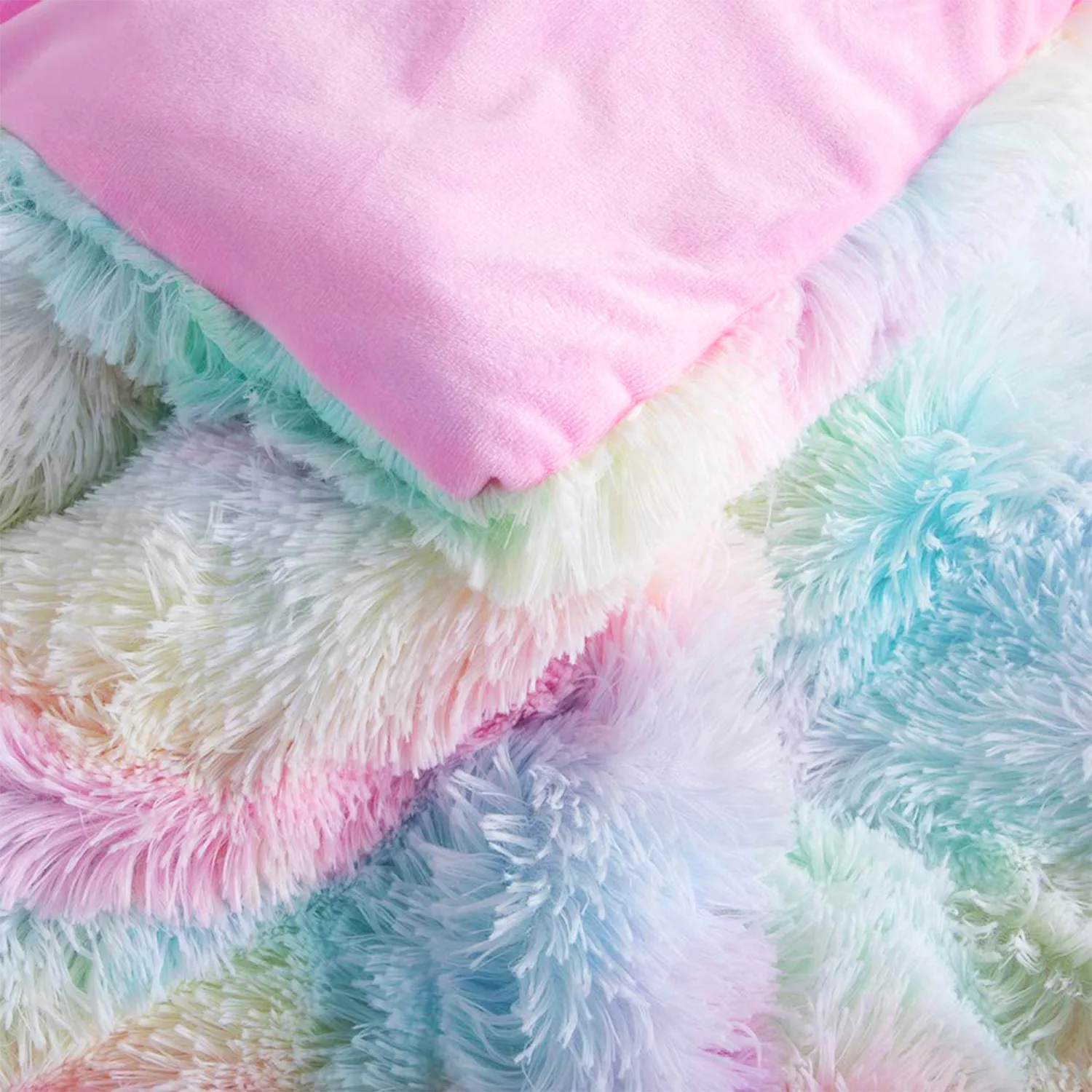 Luxury Solid Color Comforter Set Fluffy Plush Winter Queen Size Hypoallergenic Machine Washable No Shedding