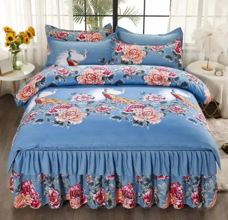 The Latest Modern Printed Bedding Set Skirt Print Is Suitable for the Bedroom.
