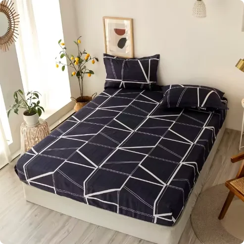 Custom Printed Right Angle Flat Sheet Set Deep Pocket Non Slip Fitted Polyester Bedding for Hotel Home Wholesale