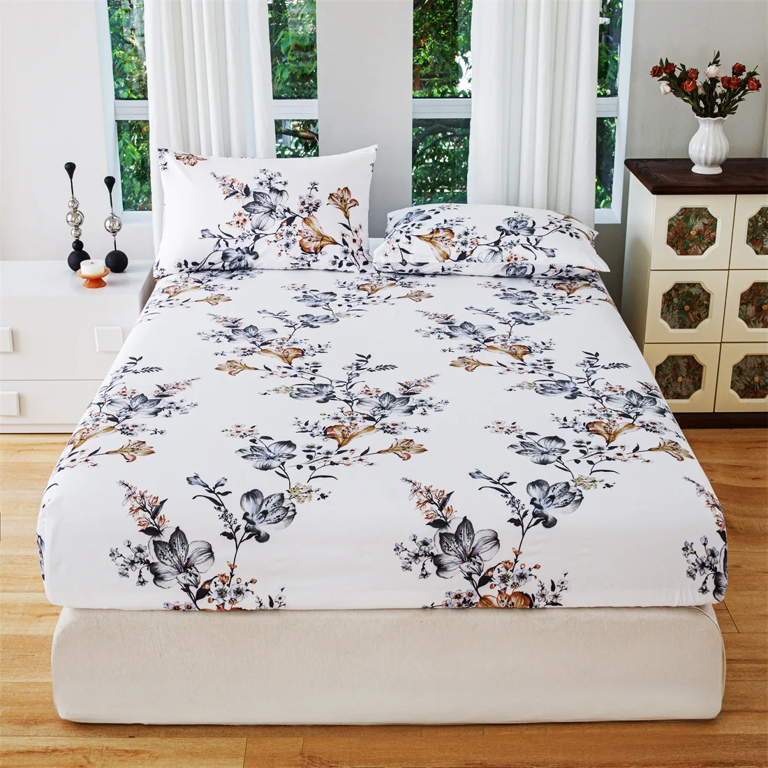 Full Size Mattress Protector Set Non Slip Printed Bed Cover with Pillowcases All Inclusive Bedding Collection