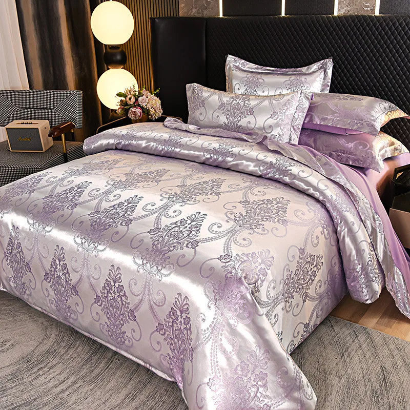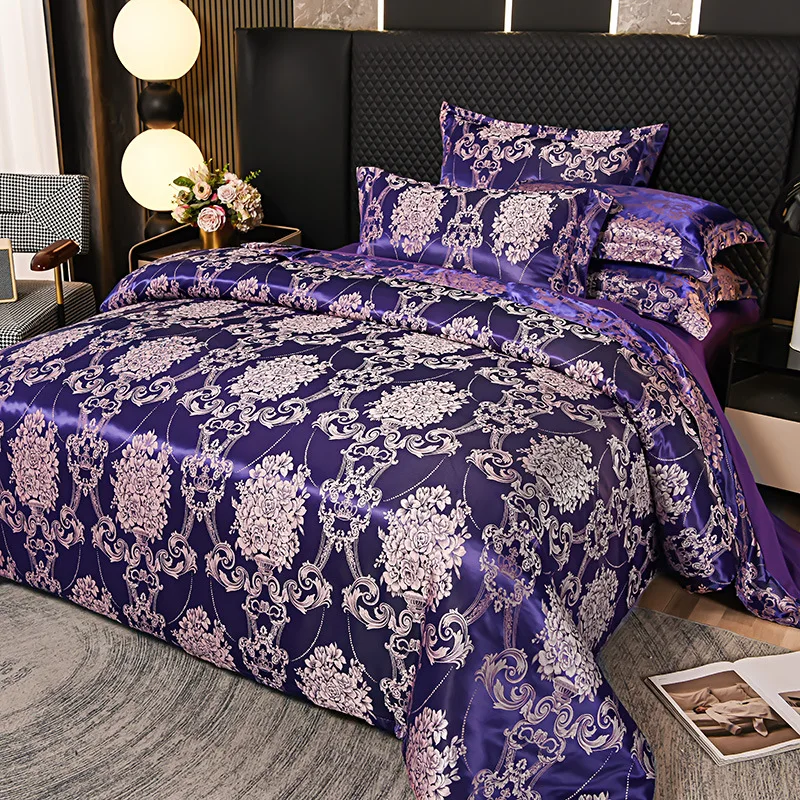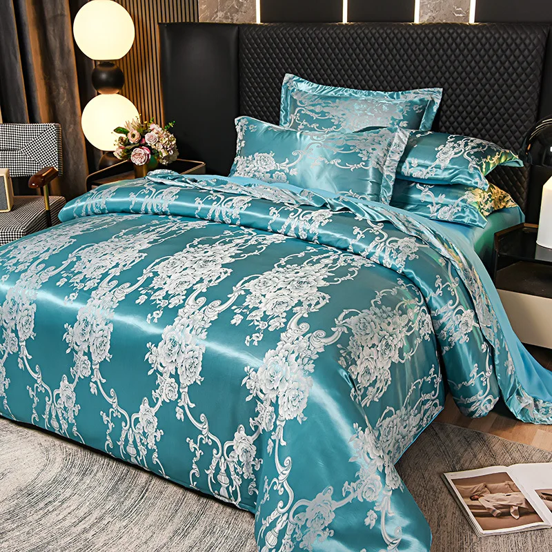 European Style Jacquard Quilt Set 4 Pcs, Hotel Luxury Bedding with Deep Pocket Duvet Cover