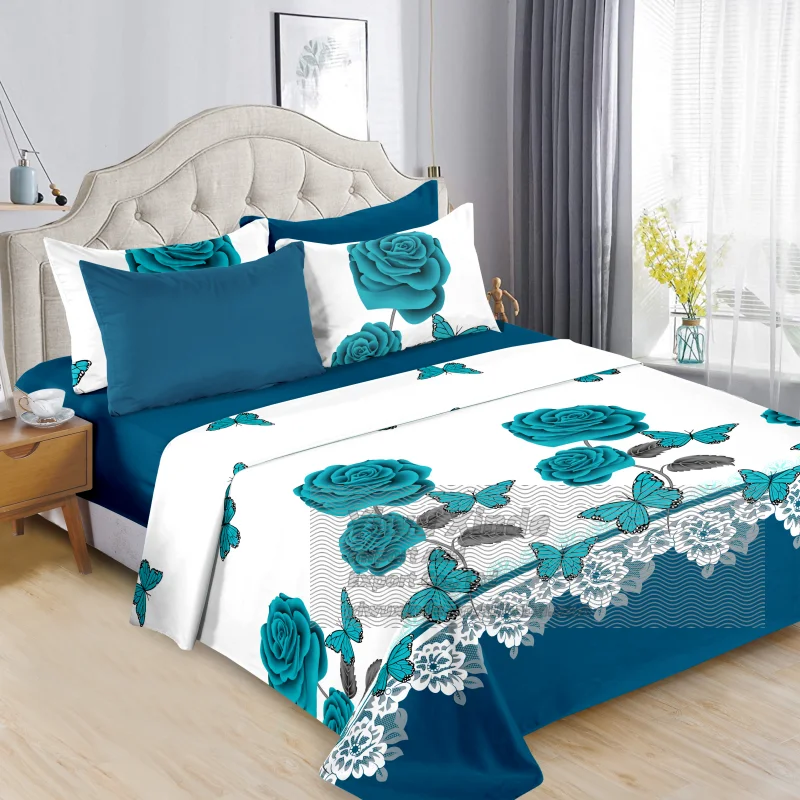 Wholesale Floral 6pcs Bed Sheets king Size Printed Flat and Fitted Sheets for Bed 6pcs Bedding Sheetsets king Size