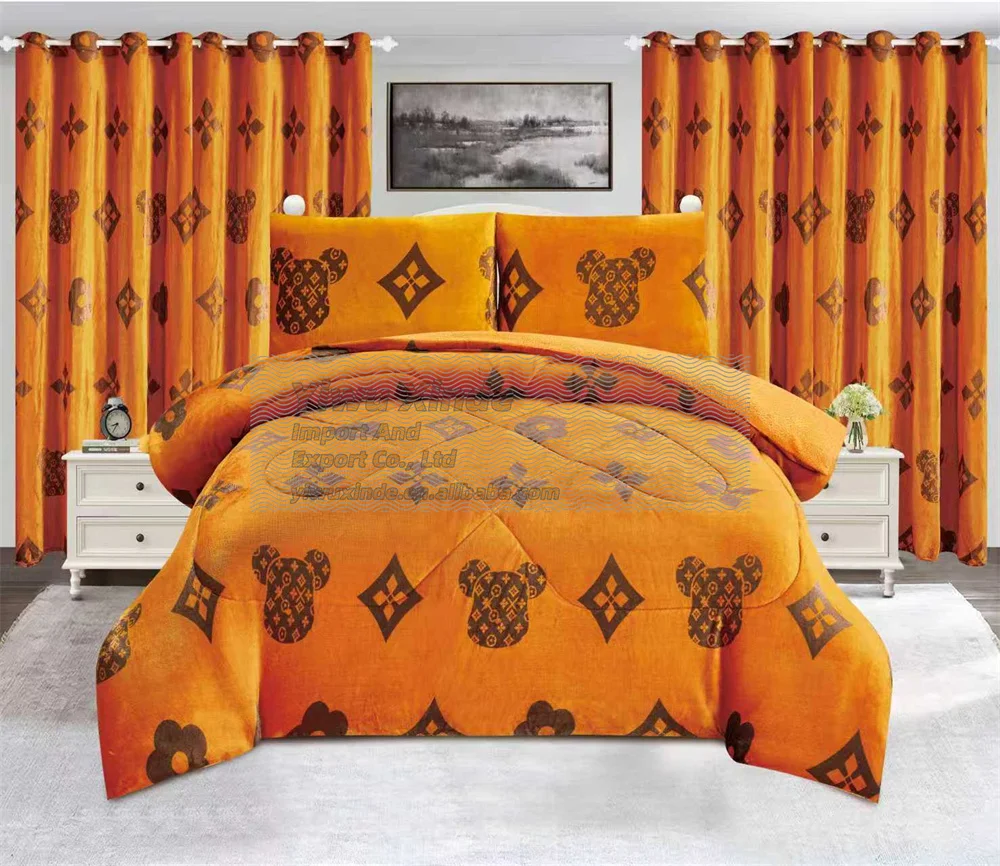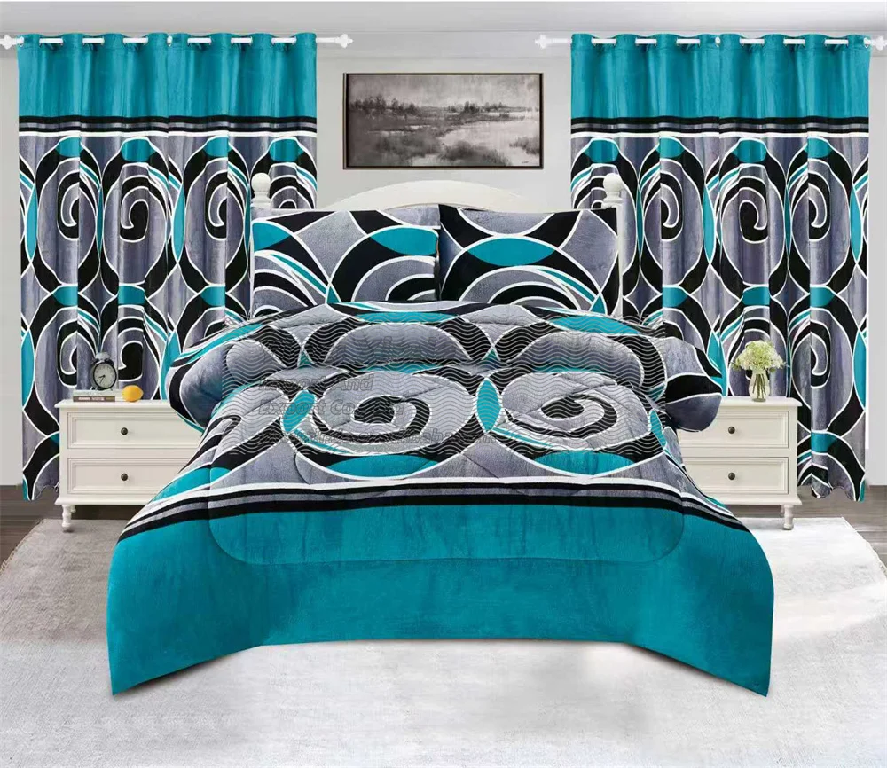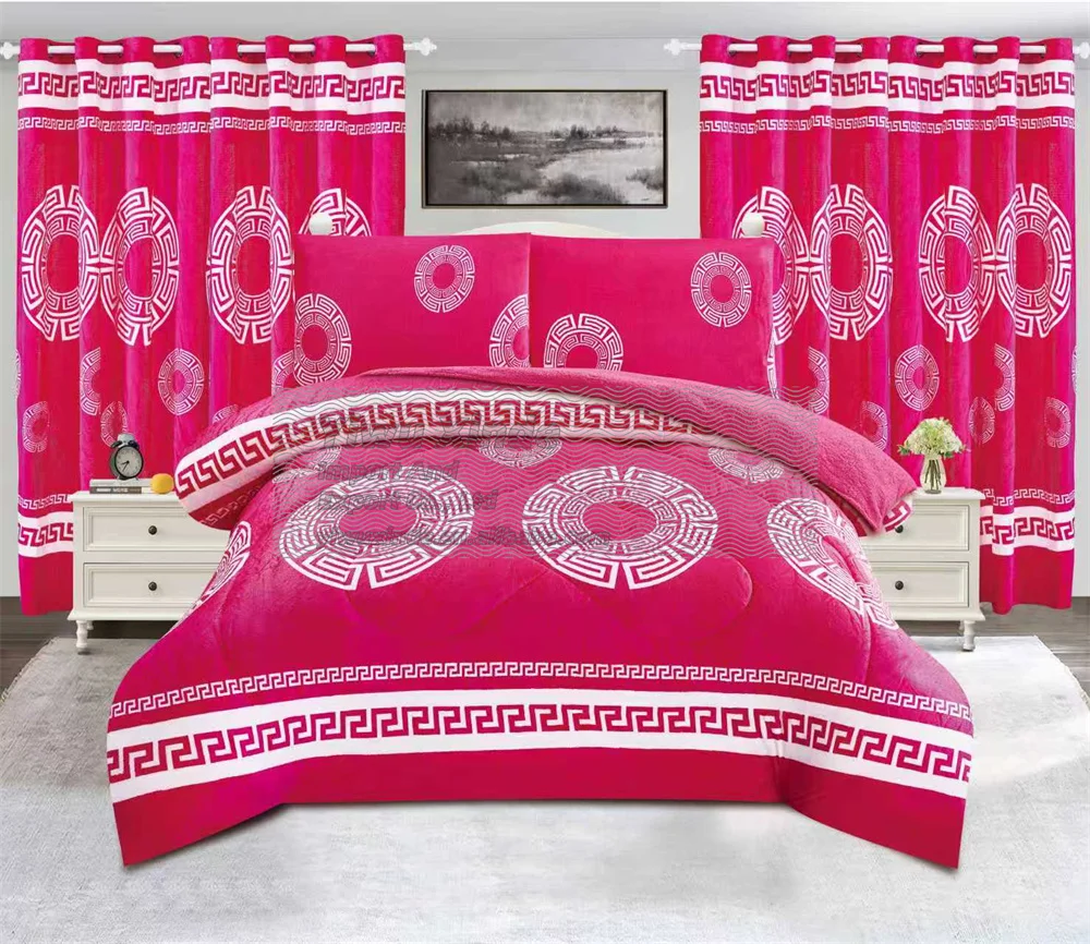 Christmas Red Luxury Design Blanket for Cold 7 Pieces Blanket with Curtains Pillowcases Borrego Blanket Comforter Bedding Set