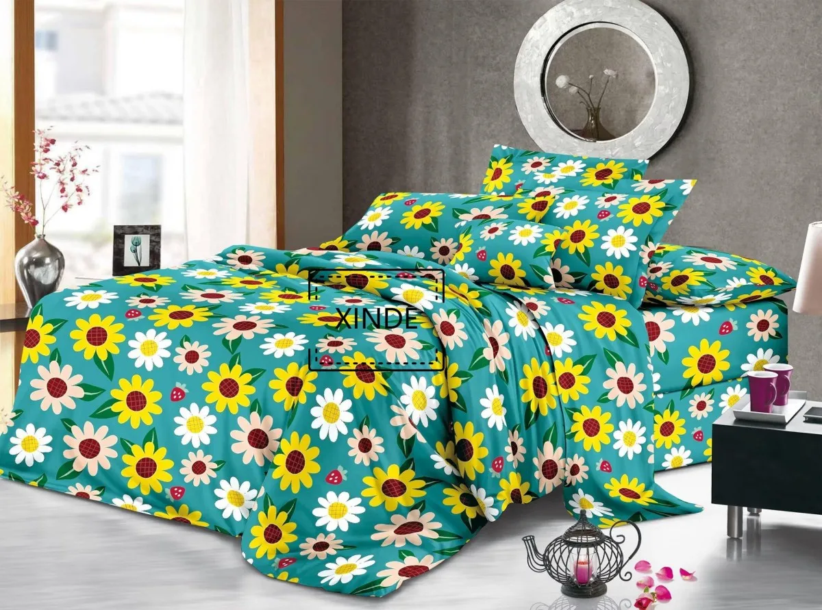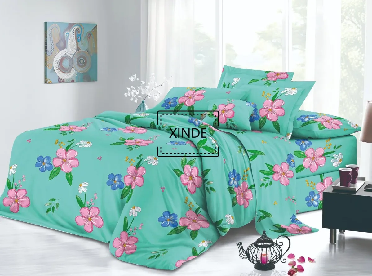 Wholesale Plants and Flowers Printing 3PCS Polyester Bed Flat Sheet Set 220X240CM