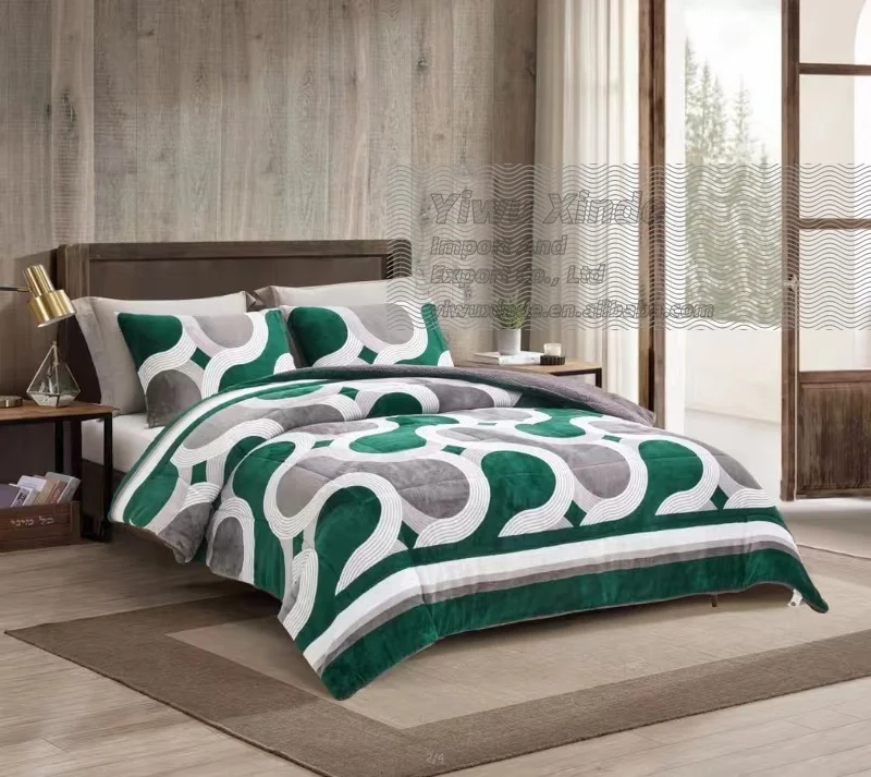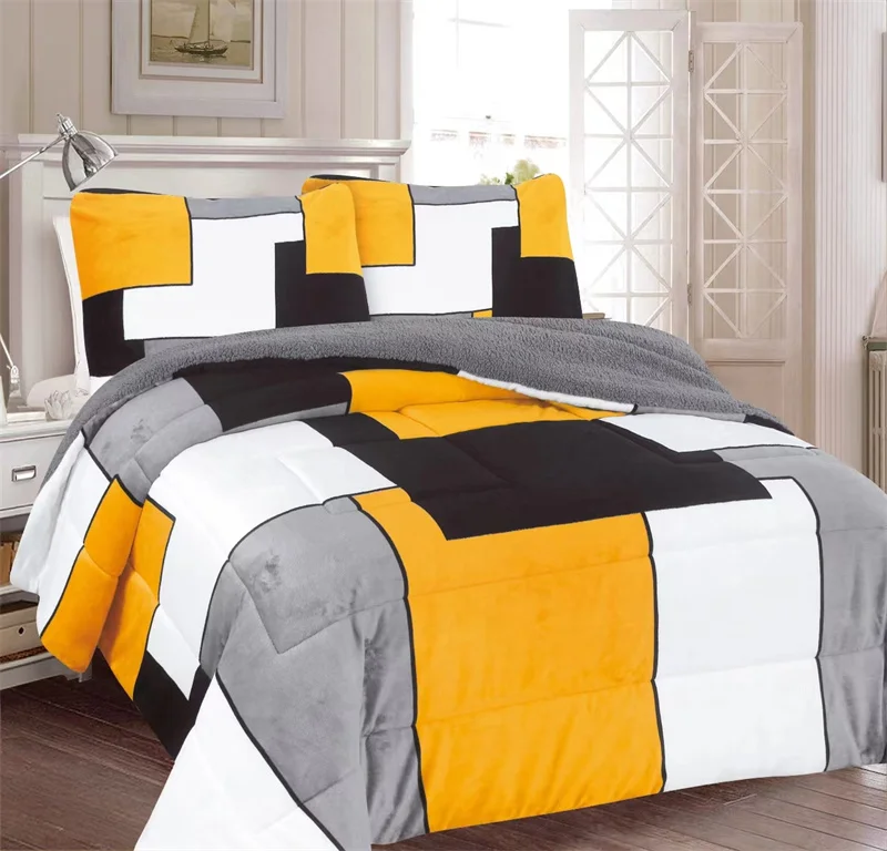 Hot Selling Super Soft Flannel Fleece Borrego Blanket 3pcs Winter Comforter Set