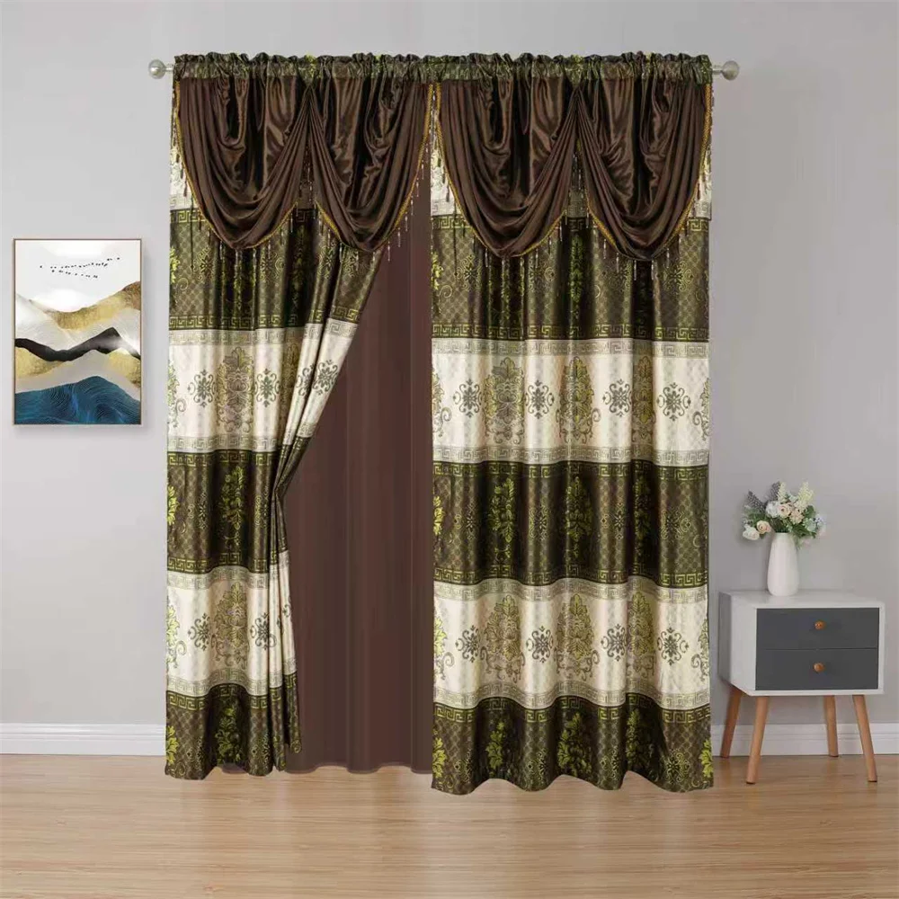 Vintage Beautiful Jacquard Decor Window Curtains Valance king Size Double Layers Blackout Curtains for the Living Room Bedroom
