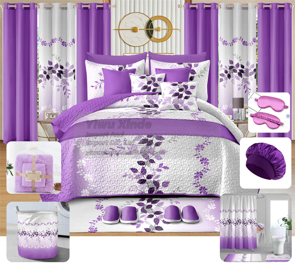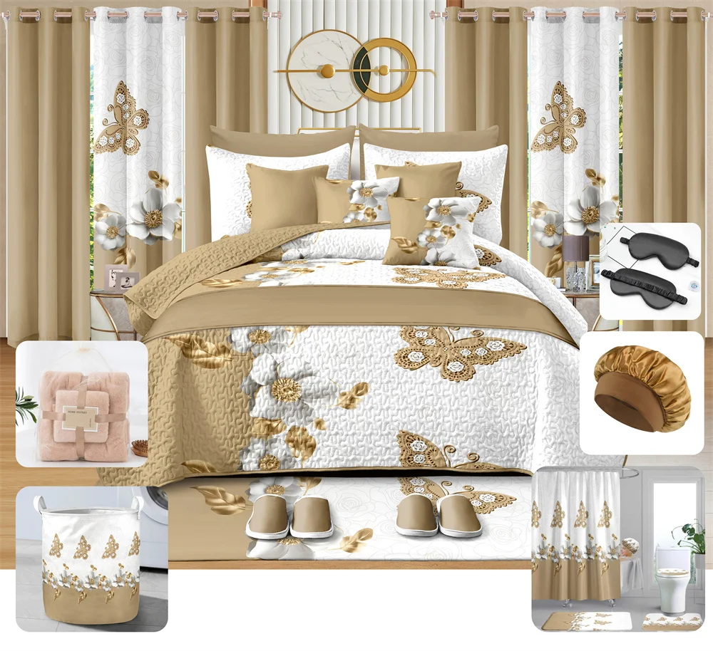 Bedding Collections Wholesale Luxurious king Size Bedcover Quilt Bedspread with Bedsheet Curtains 30 Pieces Bedding Set