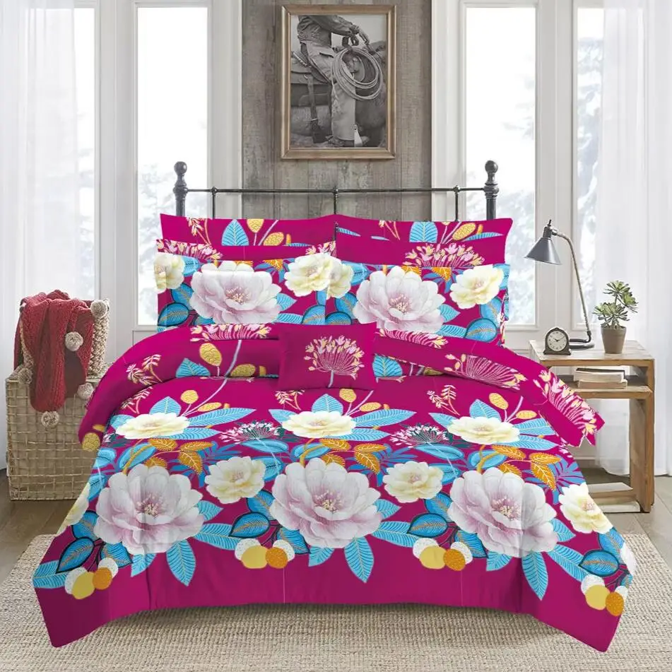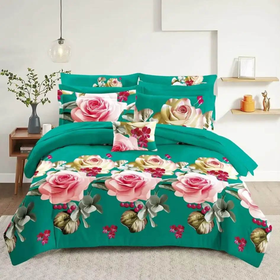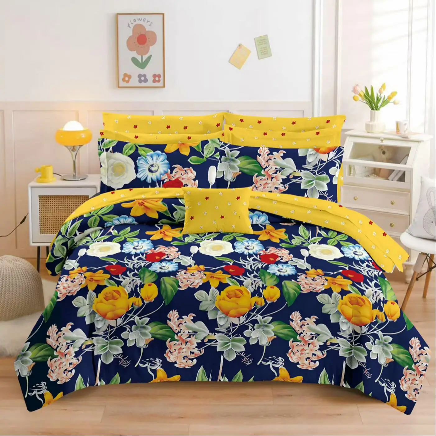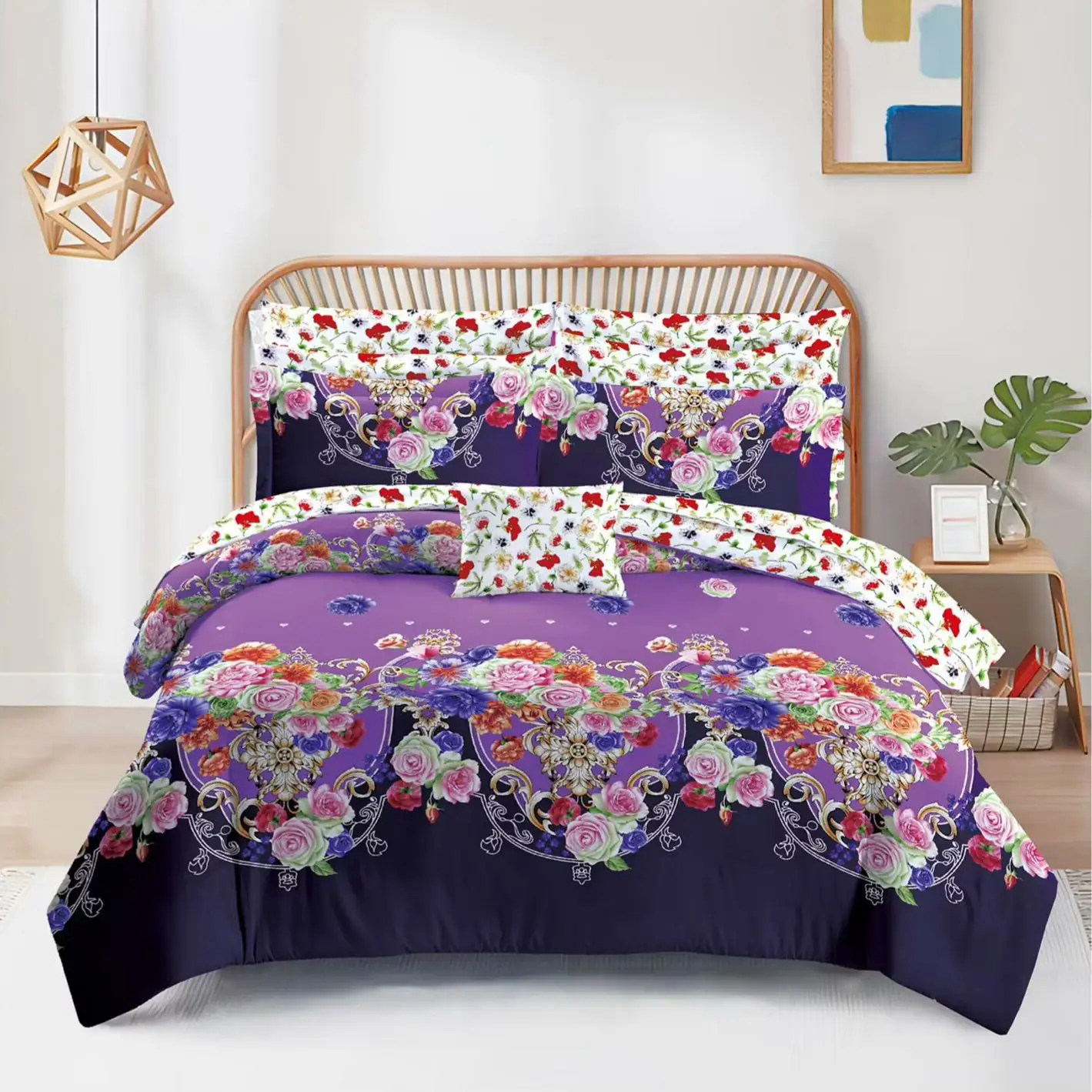 Artistic Printed King Bedding Set, 4 Piece Custom Design Luxury Cotton Comforter Collection