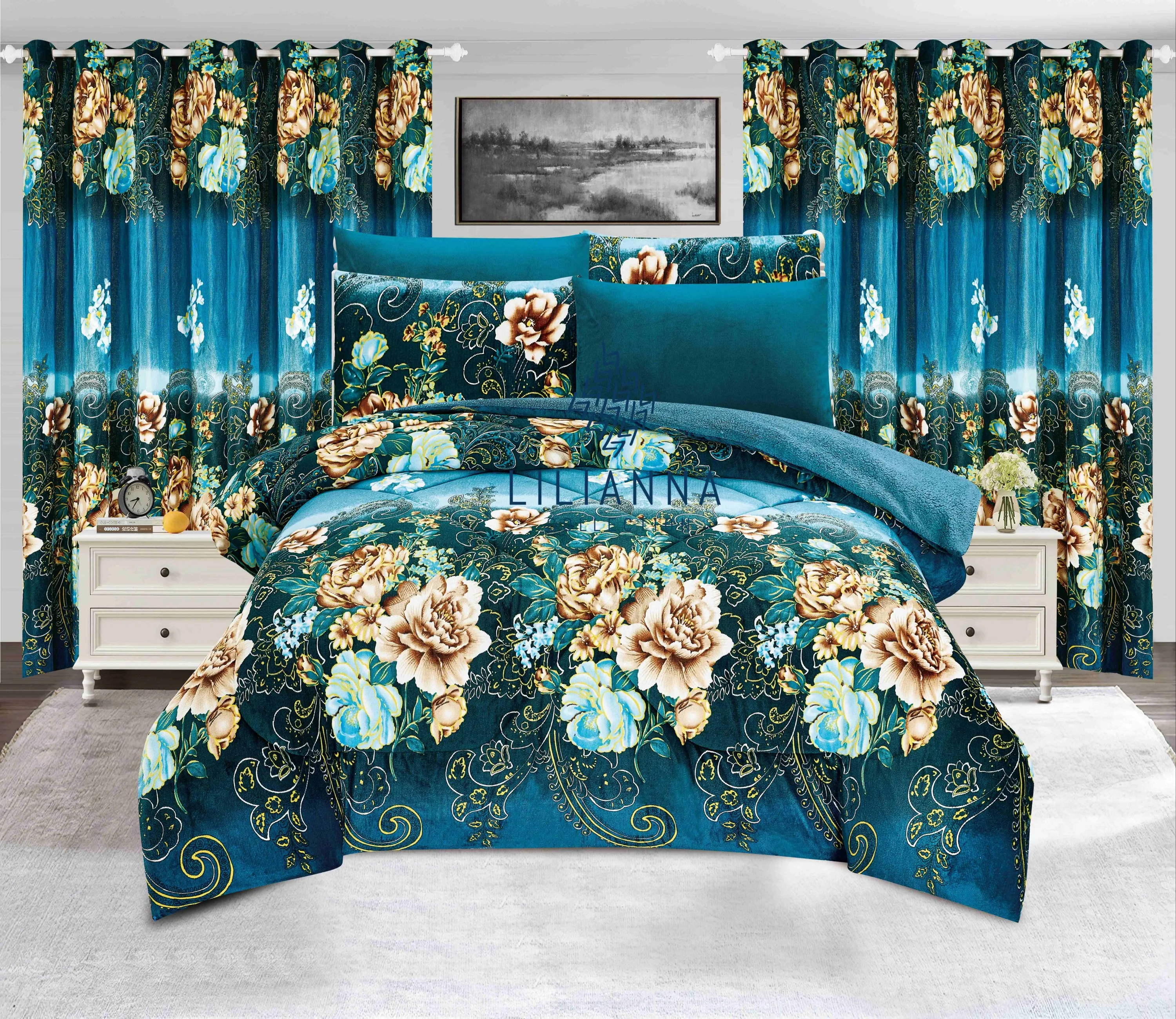 Hot Selling Ultra Soft Flannel Fleece Borrego 7-Piece Winter Bed Comforter Set Warm & Cozy