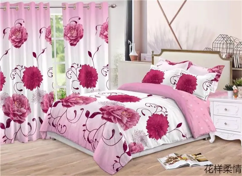Ready to Ship Duvet Cover Bed Sheets and Curtains Set Bedding Set Bed Sheet With Match Curtain