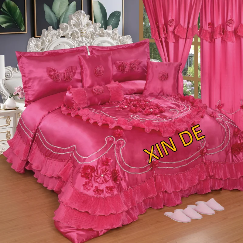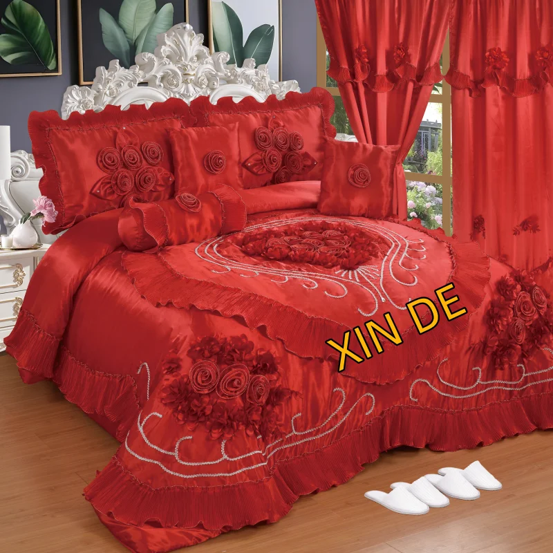 New Household Items 10 Piece Wedding Set Including Curtains Slippers and Bedding Covers