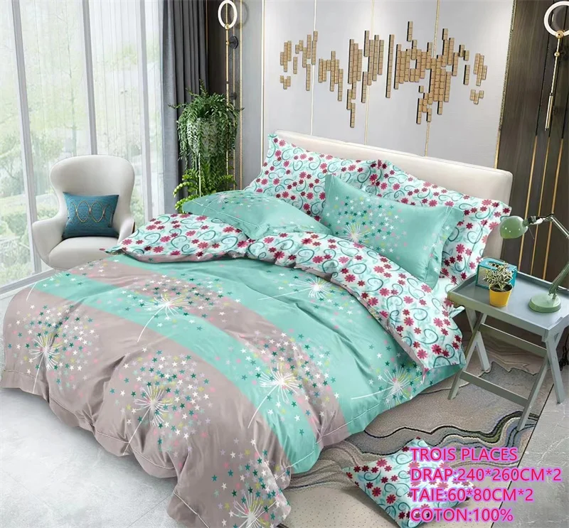 Wholesale Queen King Size 100% Cotton Sheet Set Floral Pattern Bedding with 2 Sheets 2 Pillow Cases Disposable Cooling Features