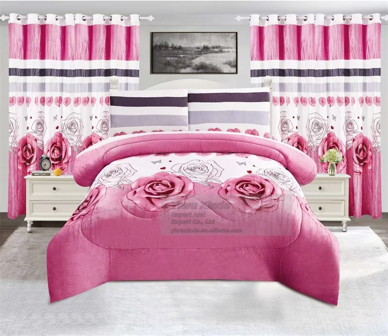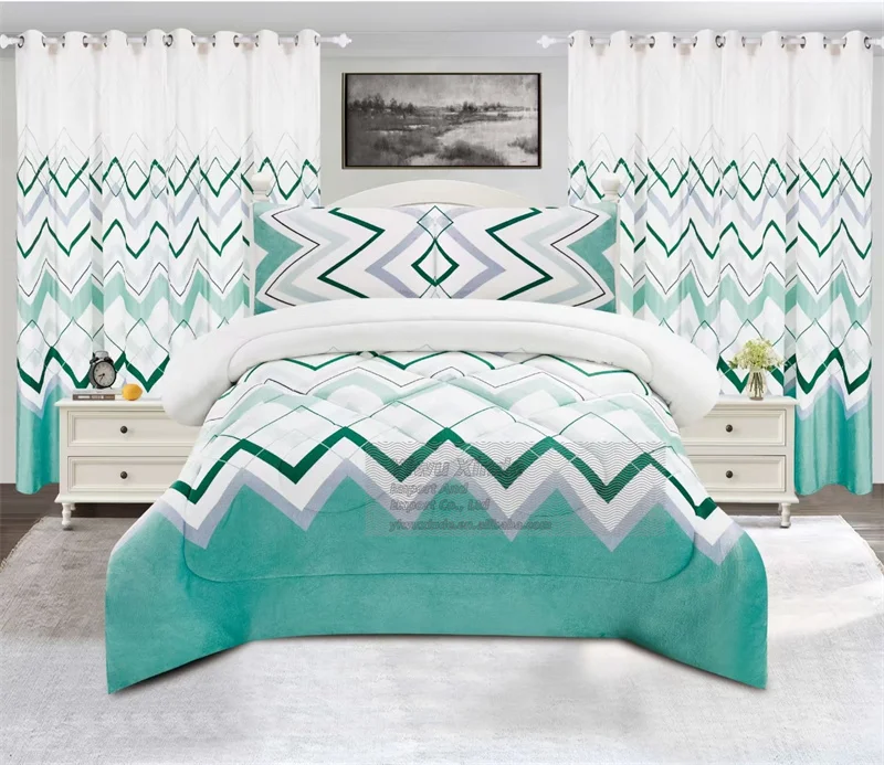 New Style Borrego 5 Pcs Bedding Set with Curtains Flannel Fleece Sherpa King Cal King Size Cotton Duvet Set for Winter