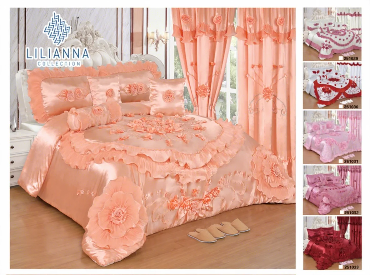 10piece Lace Princess Wedding Sheet Set with Curtains and Slippers Luxury Comforter Set Bridal Bedding Set King Size in Stock