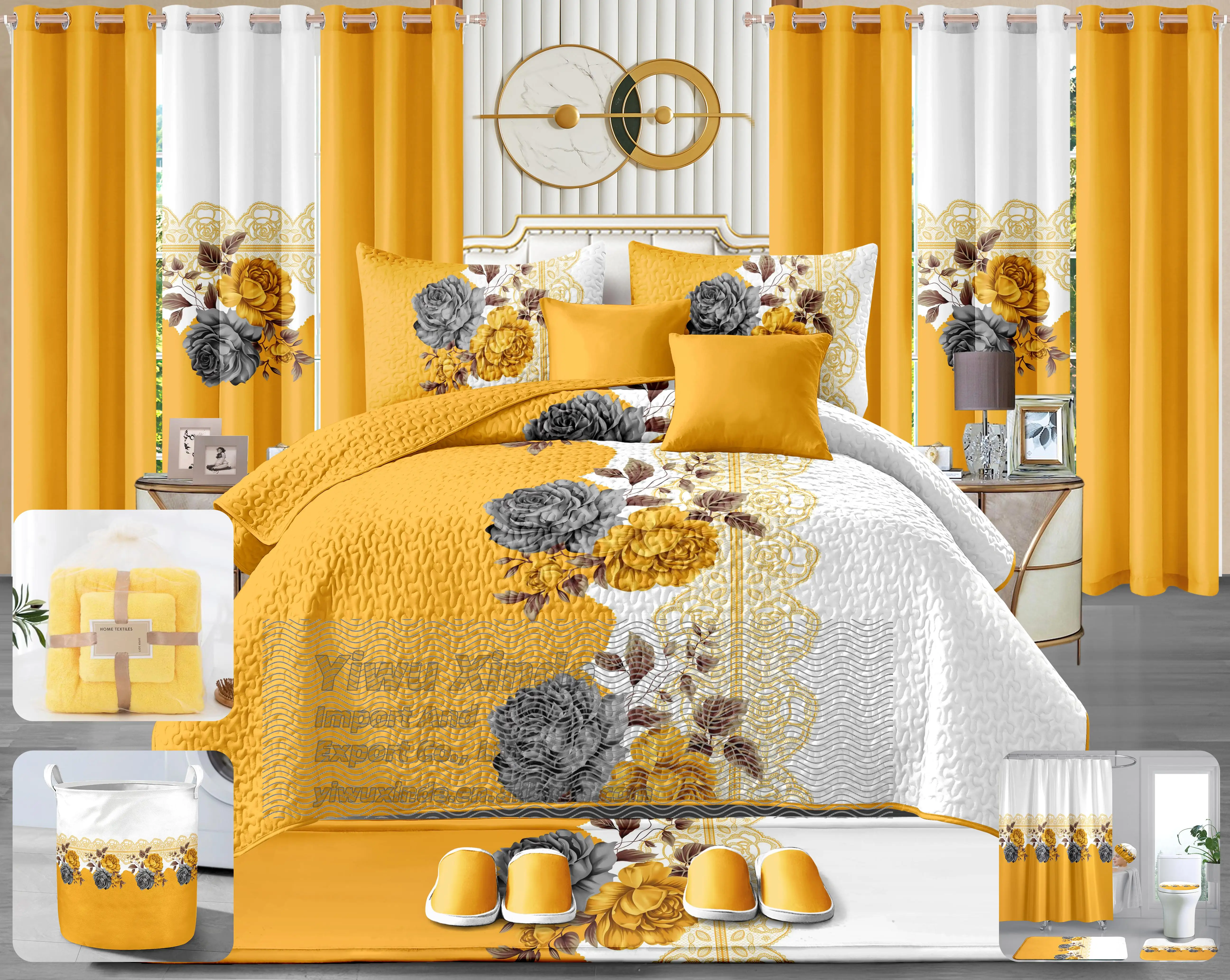 New Stock 24 Pieces Bedding Set king Size Christmas Red Green Home Decoration Bed Sheet Bedding Set 24 Pieces with Curtains