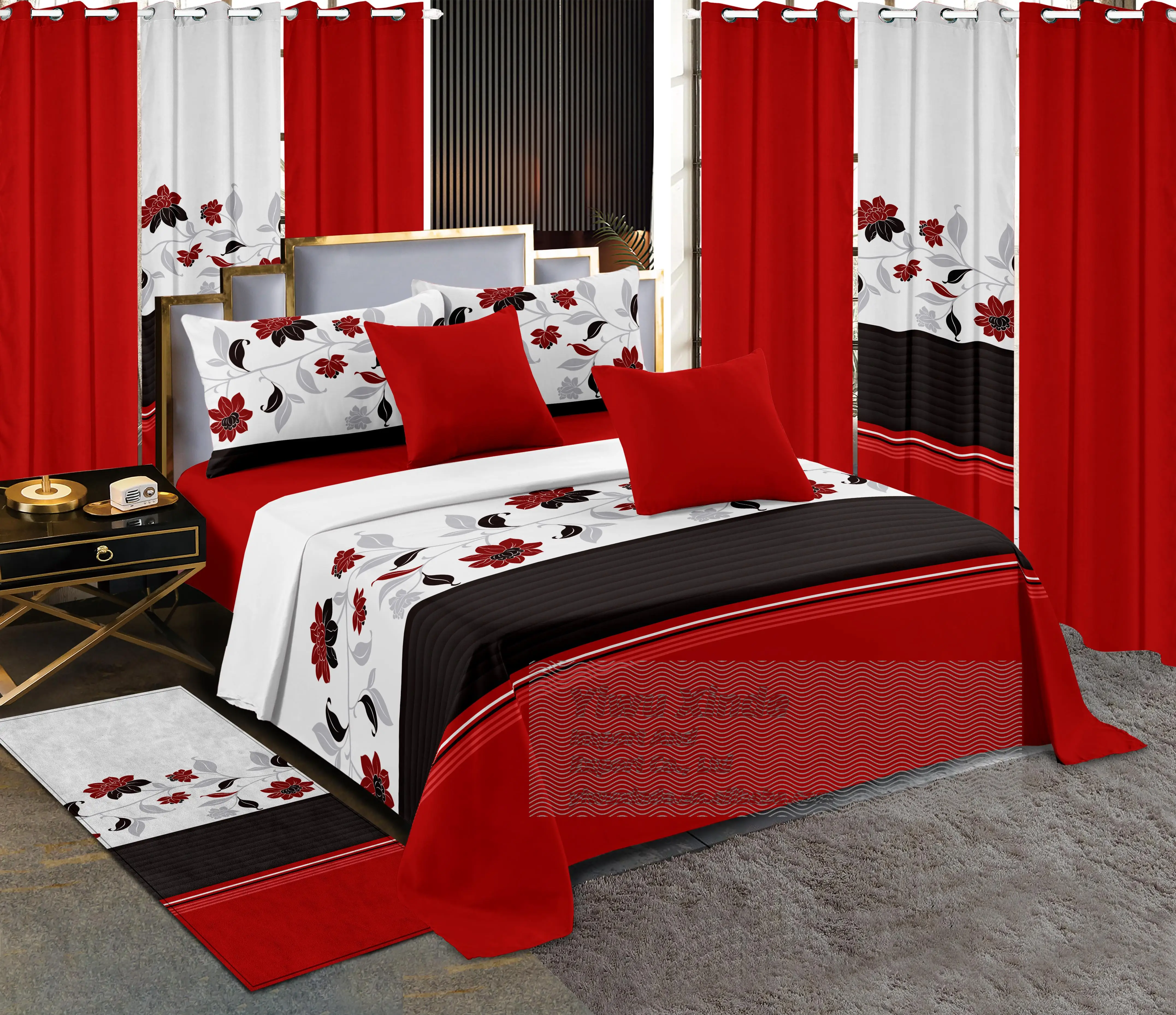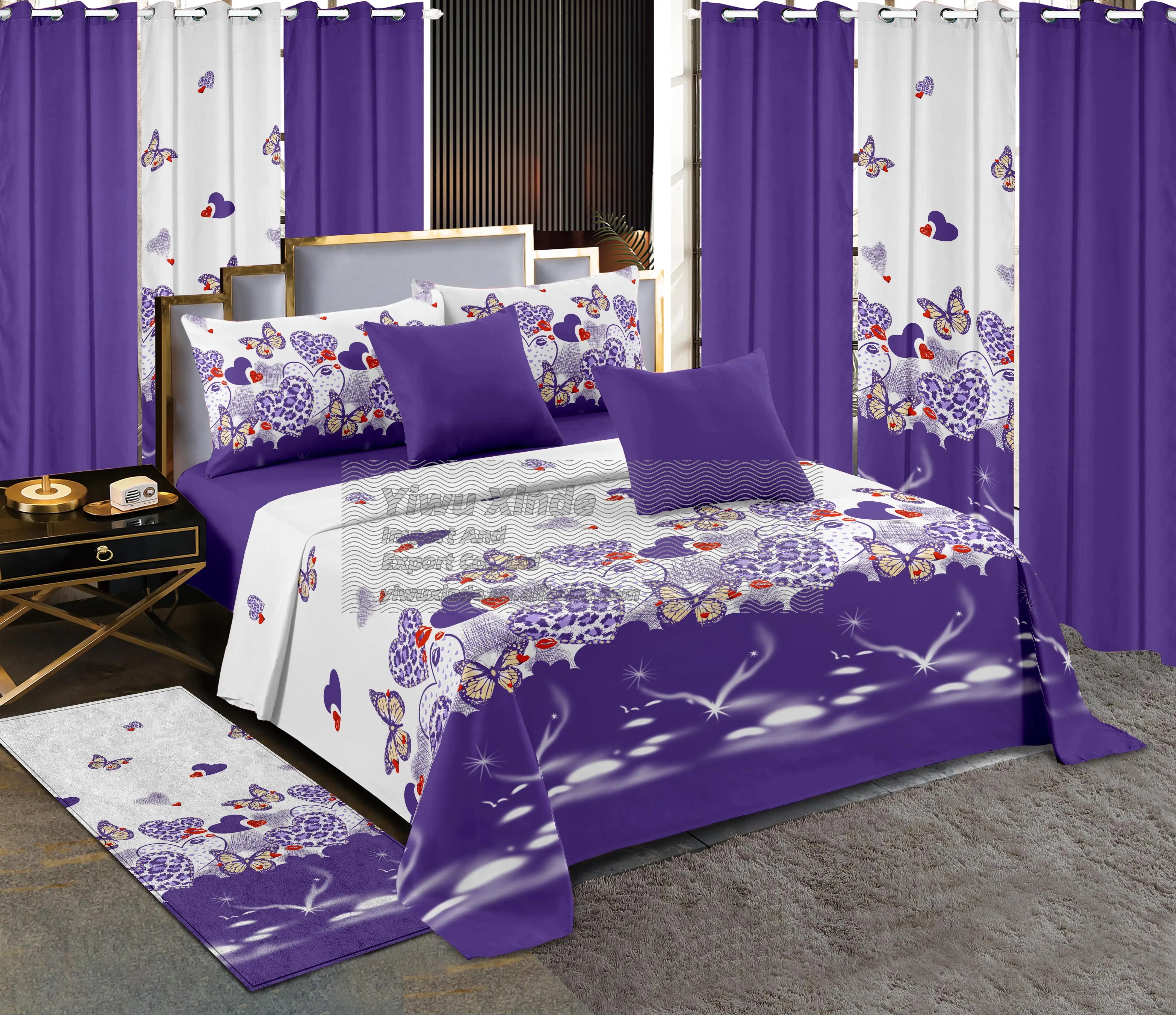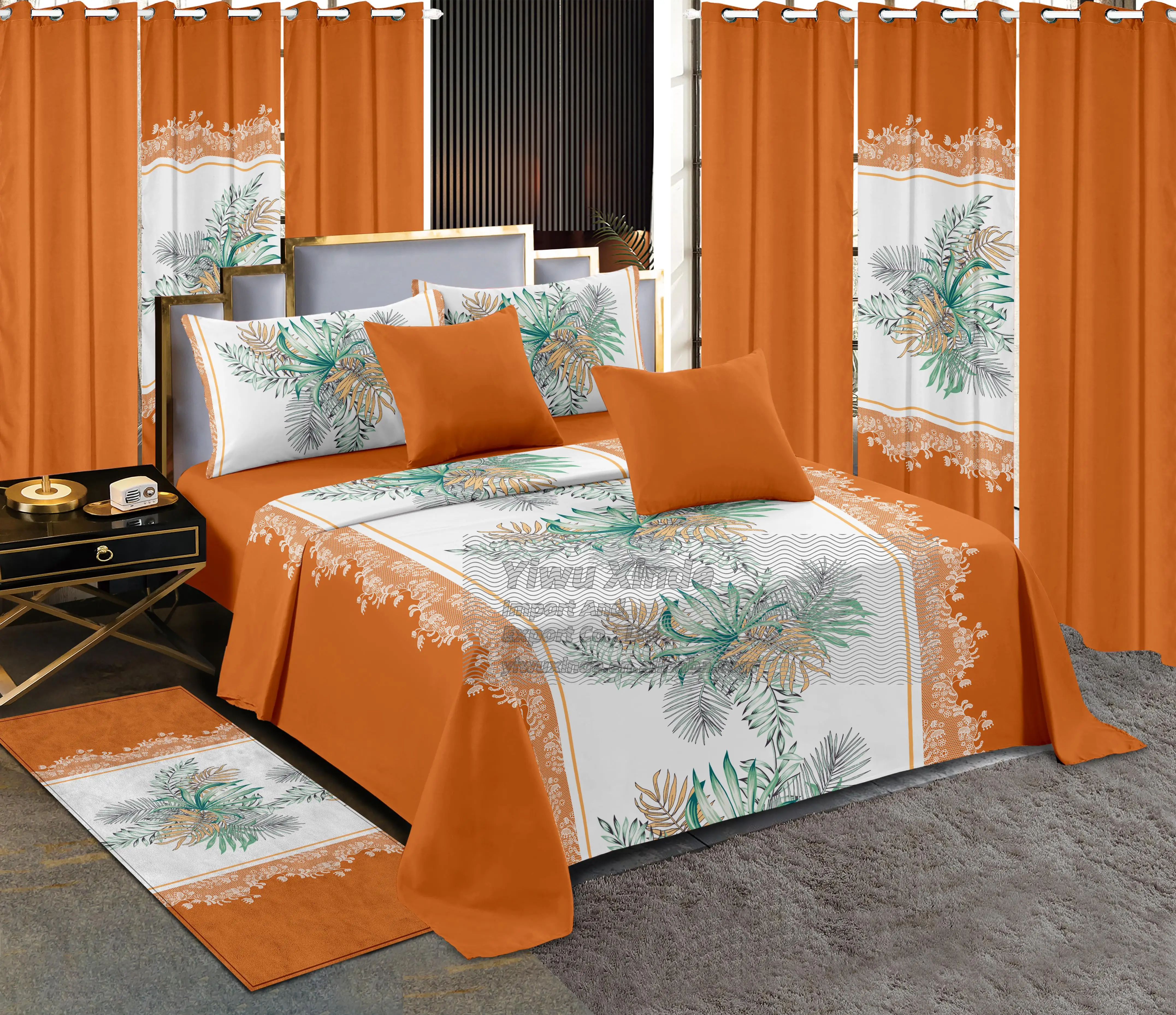 2026 Luxury Wholesale BedSheet Set 13 Piece king Size Fitted Sheet Bedding Sheet Set with Matching Curtains