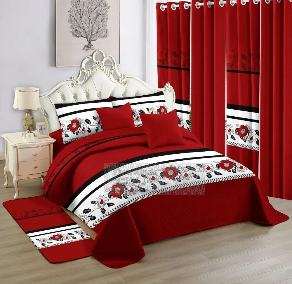 Wholesale King Size 12 Pcs Floral Pattern Quilt Bedspread Set 12 Pcs Matching Curtains Polyester-Quilt Sets for All Seasons