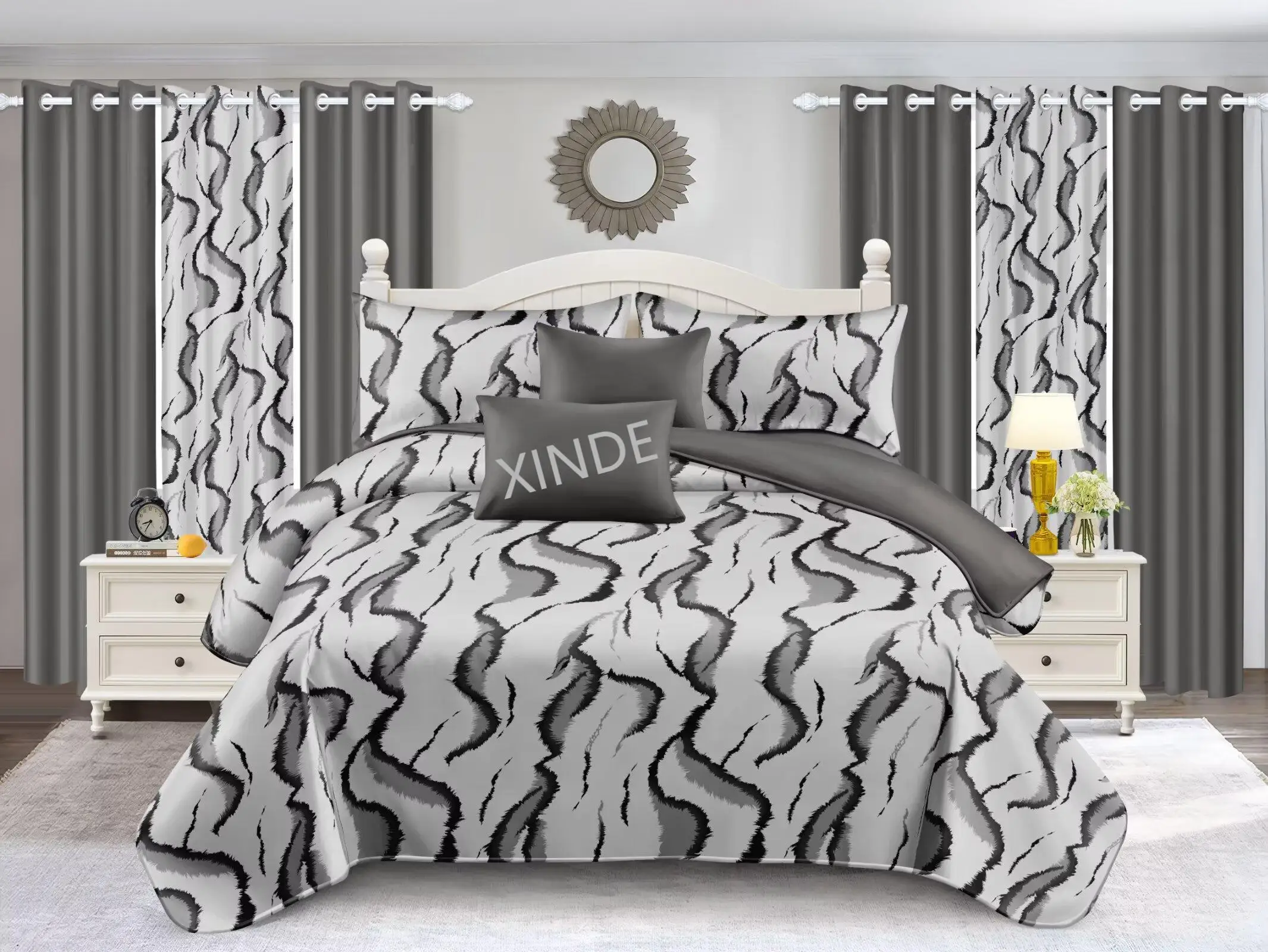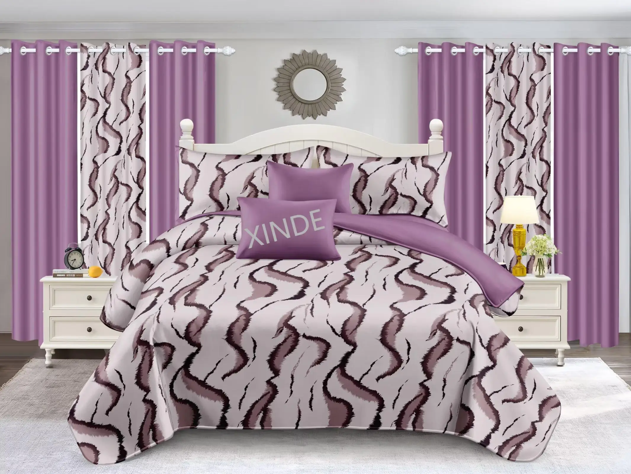8PCS New Design King Size Comforter Bedding Set With Window Curtains