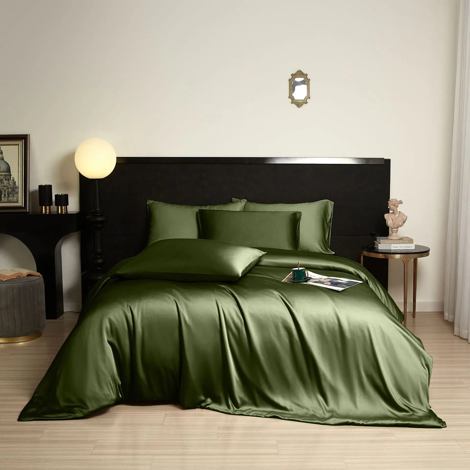 100% Bamboo Woven Modern Solid Color Bedding Set Flat Sheet Fitted Sheet Pillowcases 300tc Thread Count Wedding Four-piece Kit
