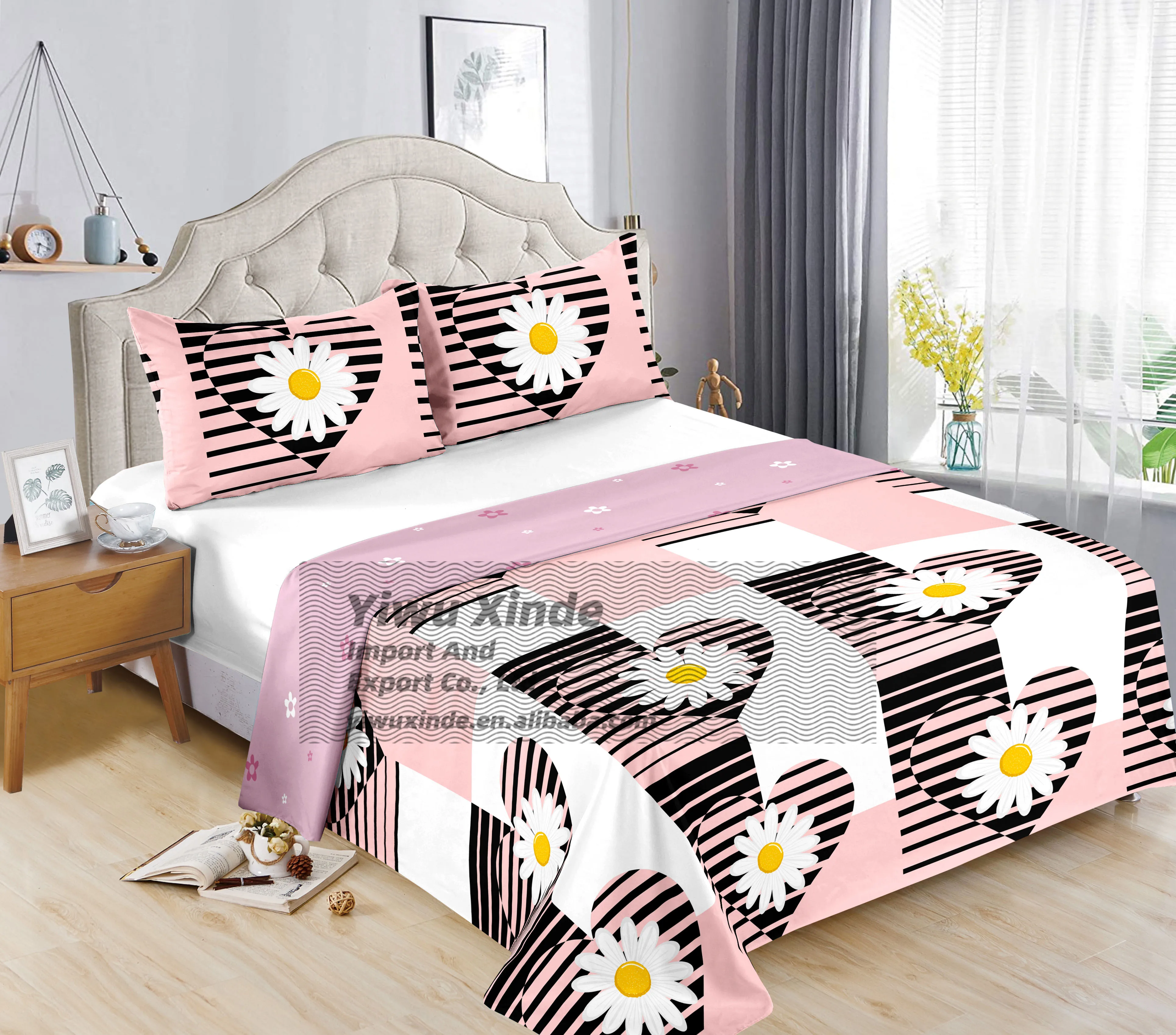Wholesale 3Pcs Bed Sheet Set Queen Size Floral Striped Pattern Soft Flat Sheet for Hotels Hospitals Home