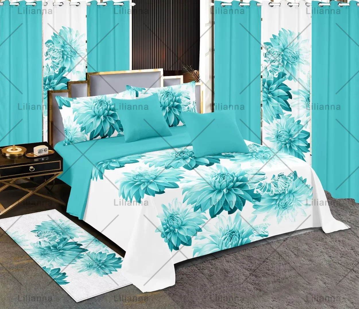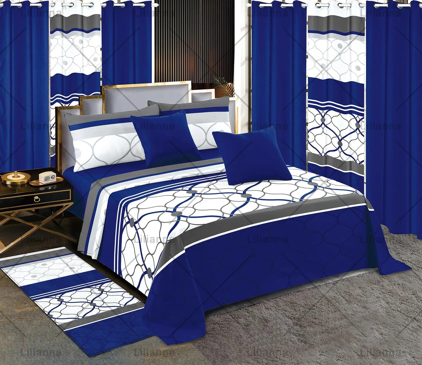 Hot Selling 13pcs 100% Polyester Bed Sheet with Curtains king Size Bedding Set for Bedroom Low MOQ