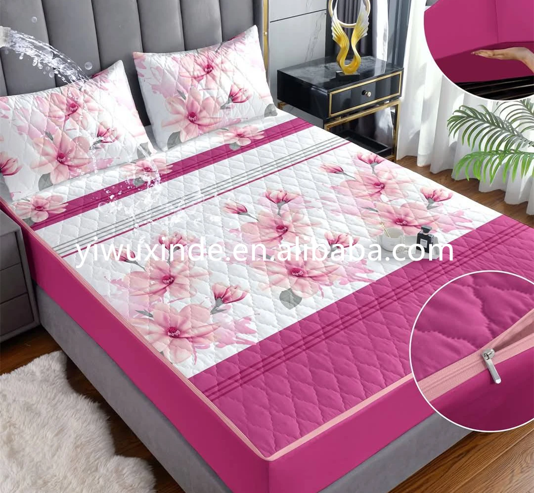 3PCS Printed Waterproof Fitted Sheet With Pillowcase King Size 3pcs Drap-housse Imperméable Wholesale Leak-proof Fitted Sheet