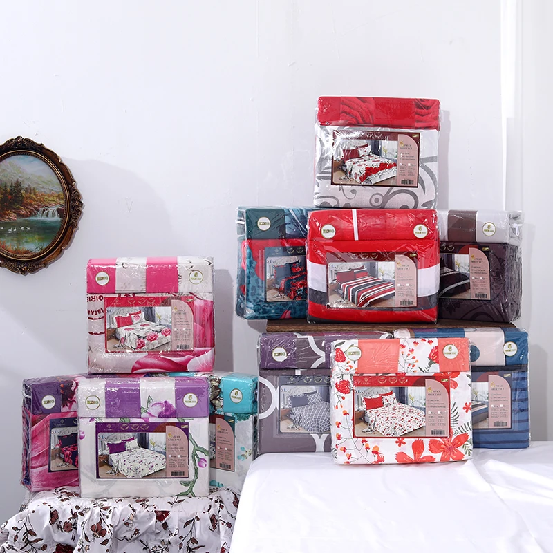 6pc Bedding Set Wholesale in Stock Retail Floral Print Cotton Touch Fitted Sheet king Size Bed Sheet with Pillowcase Low Prices