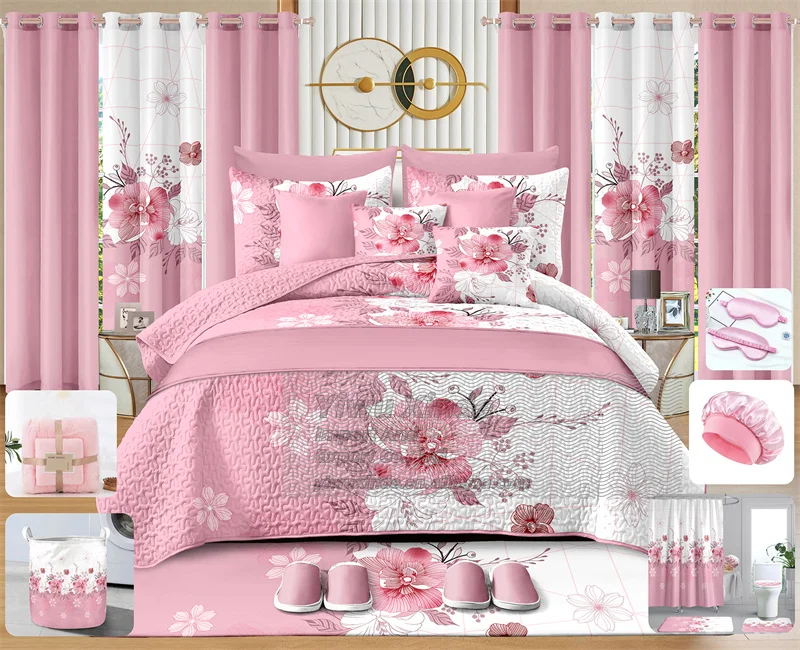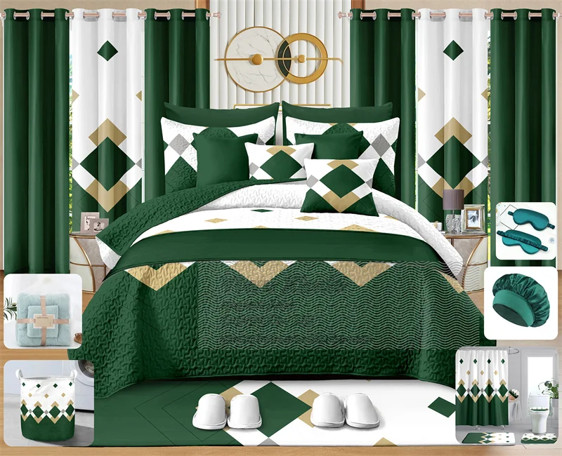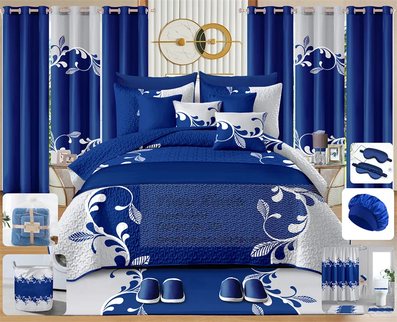 Brand New 30pieces Bedspread Set with Curtains king Size Cobertores De 30 Piezas Disponibles Quilts Bedding Set and Bathroom Set