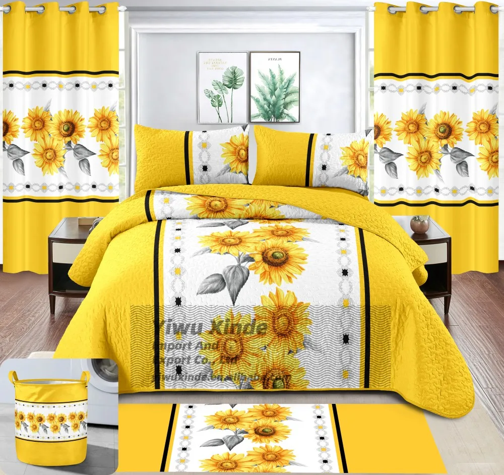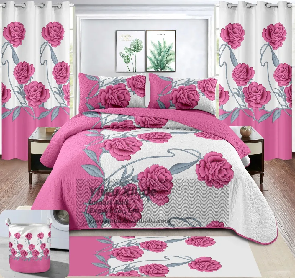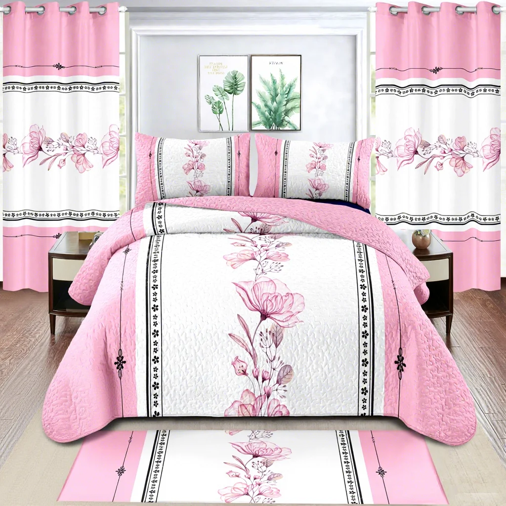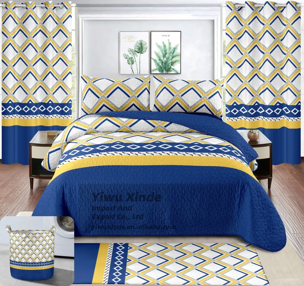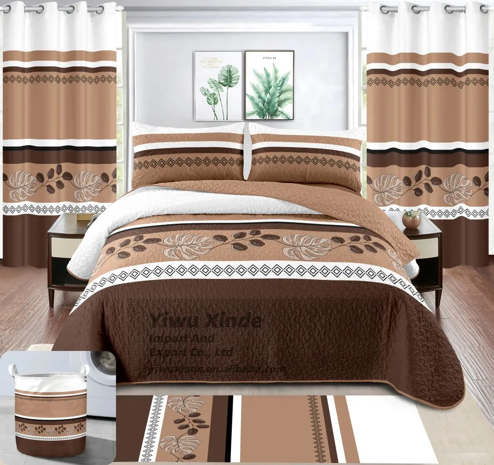 LILIANNA Low MOQ Bedspread 8 Pieces Set king Size in Stock Bed Quilted Sheet Set with Matching Curtains for All Season