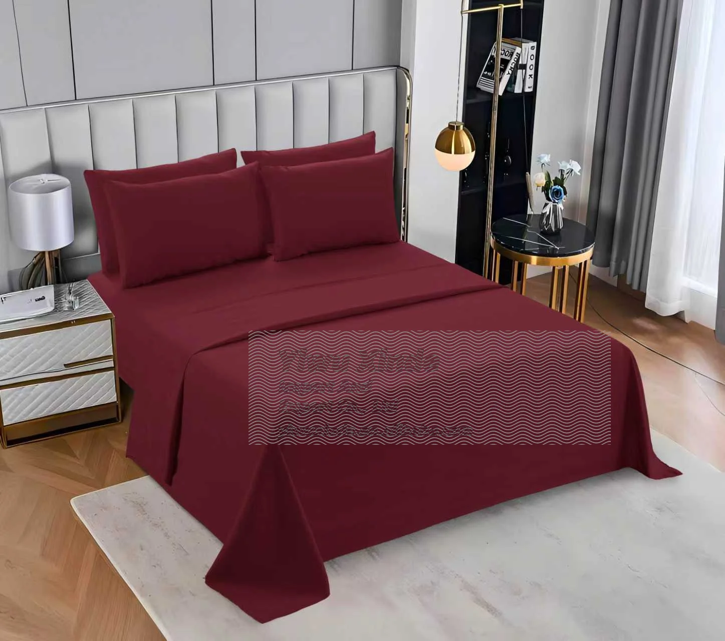 Ready to Ship Plain Color 6PCS Sheet Set Solid Color Bedding Set Ready to Ship 6 Pieces Bed Sheet Set King Queen Size