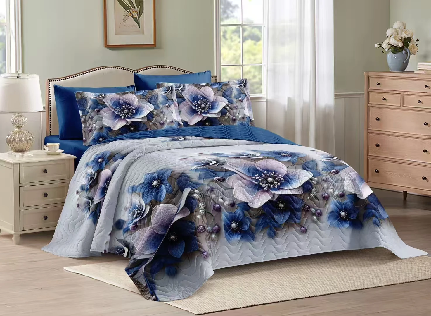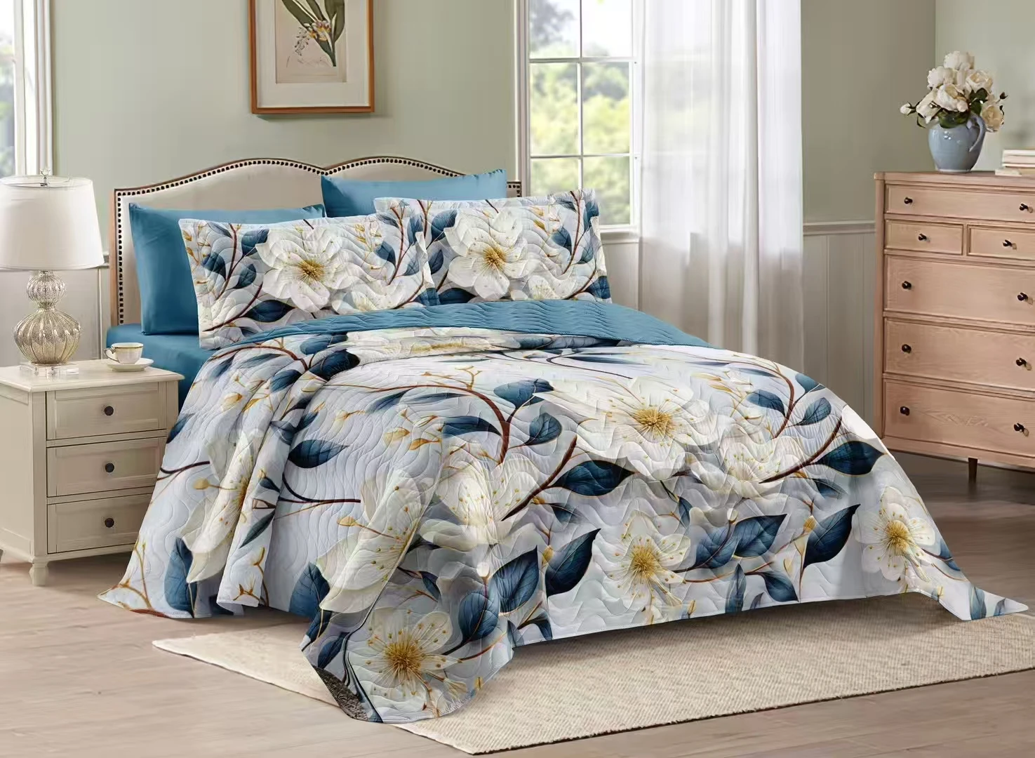 100% Bamboo Fiber King Size 300tc 3-Piece Modern Duvet Cover Set with Flat Sheet Fitted Sheet and Pillowcases