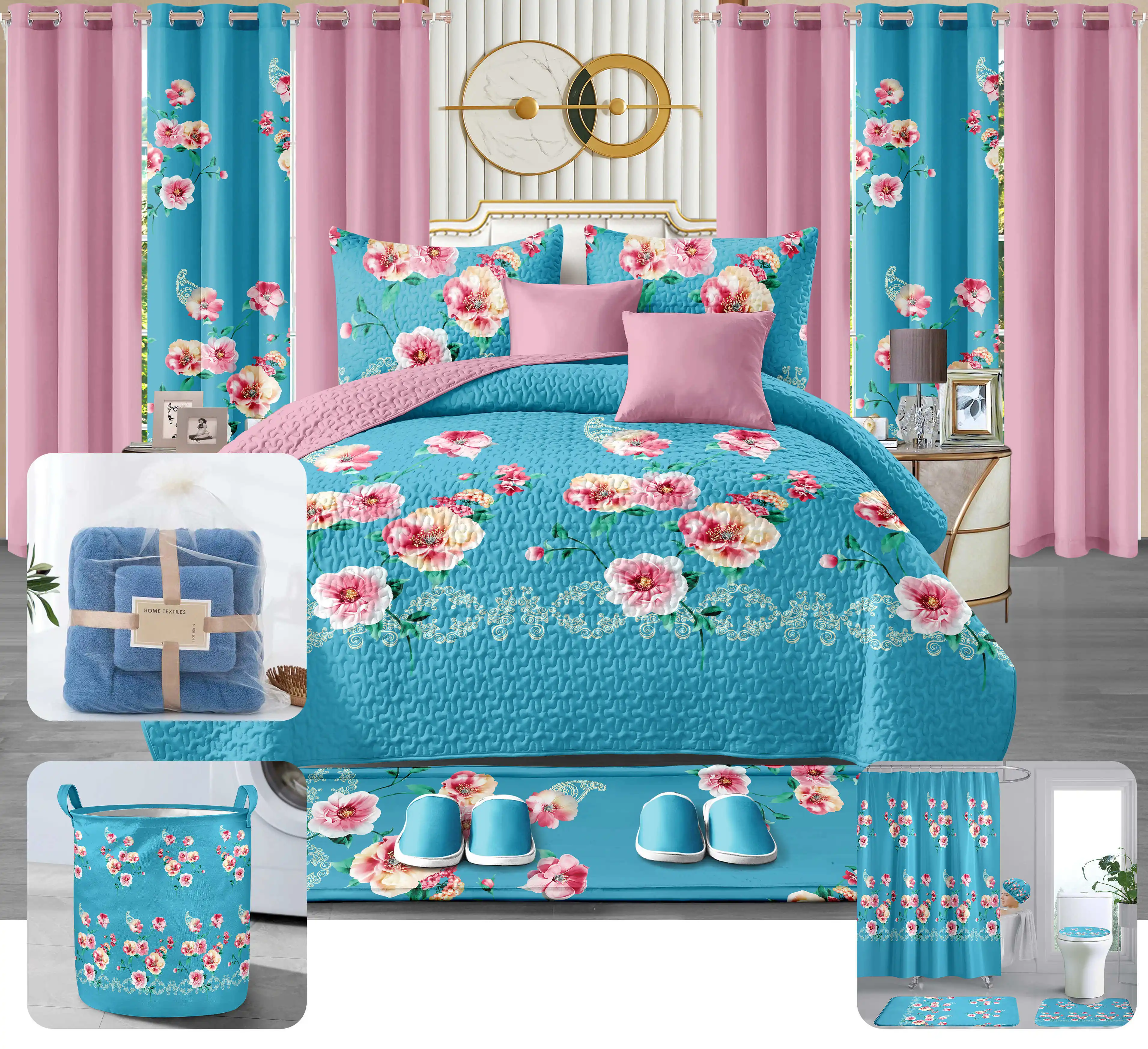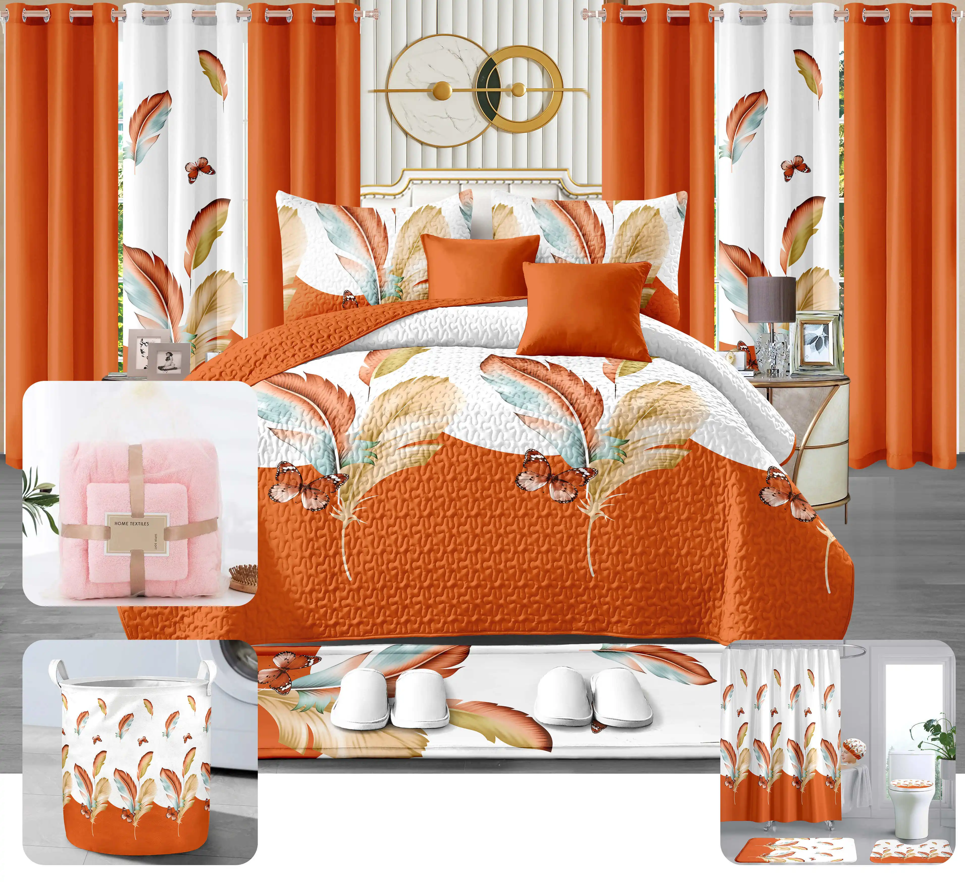 LILIANNA COLLECTION Yellow Bedspread Blanket Set 24 Pieces king Size Bedroom Bedding Sheet with Match Curtains 24 Pcs