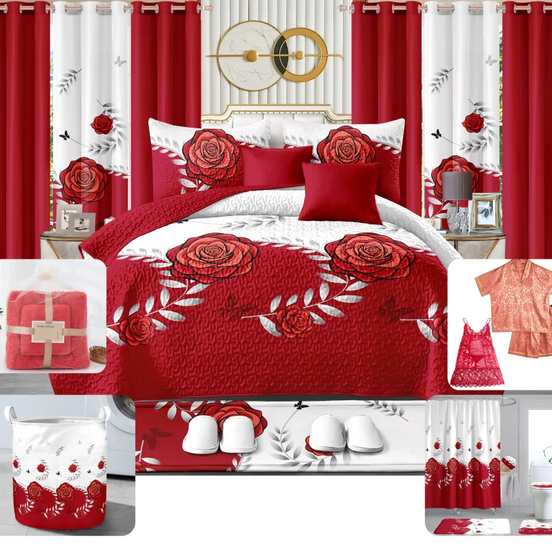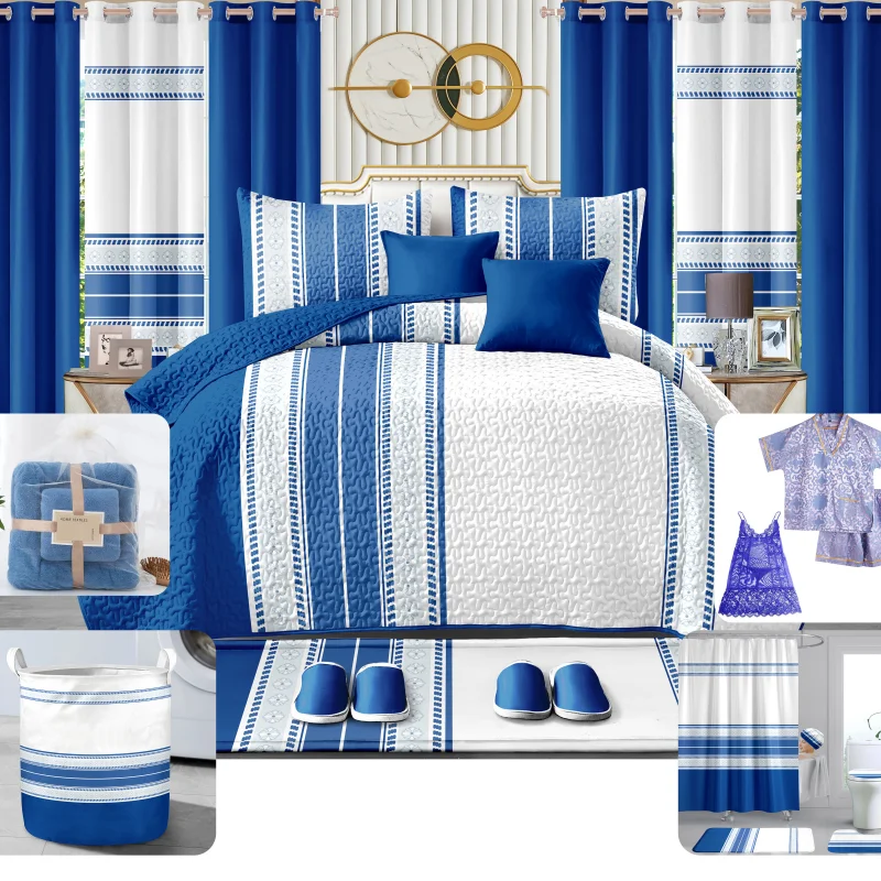 Luxurious Bedding with Quilted Coverings - Bedroom Multi-piece Set - Factory Wholesale - with Curtains - Pajamas