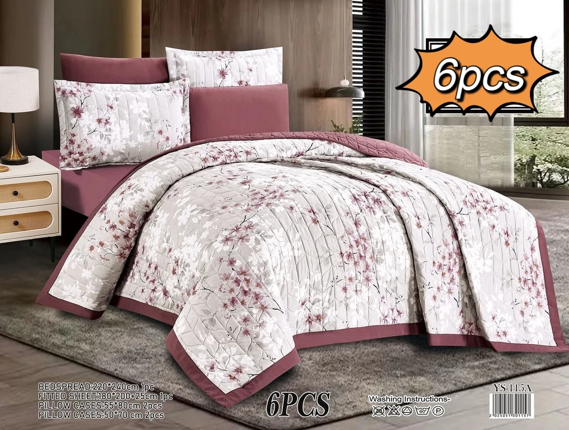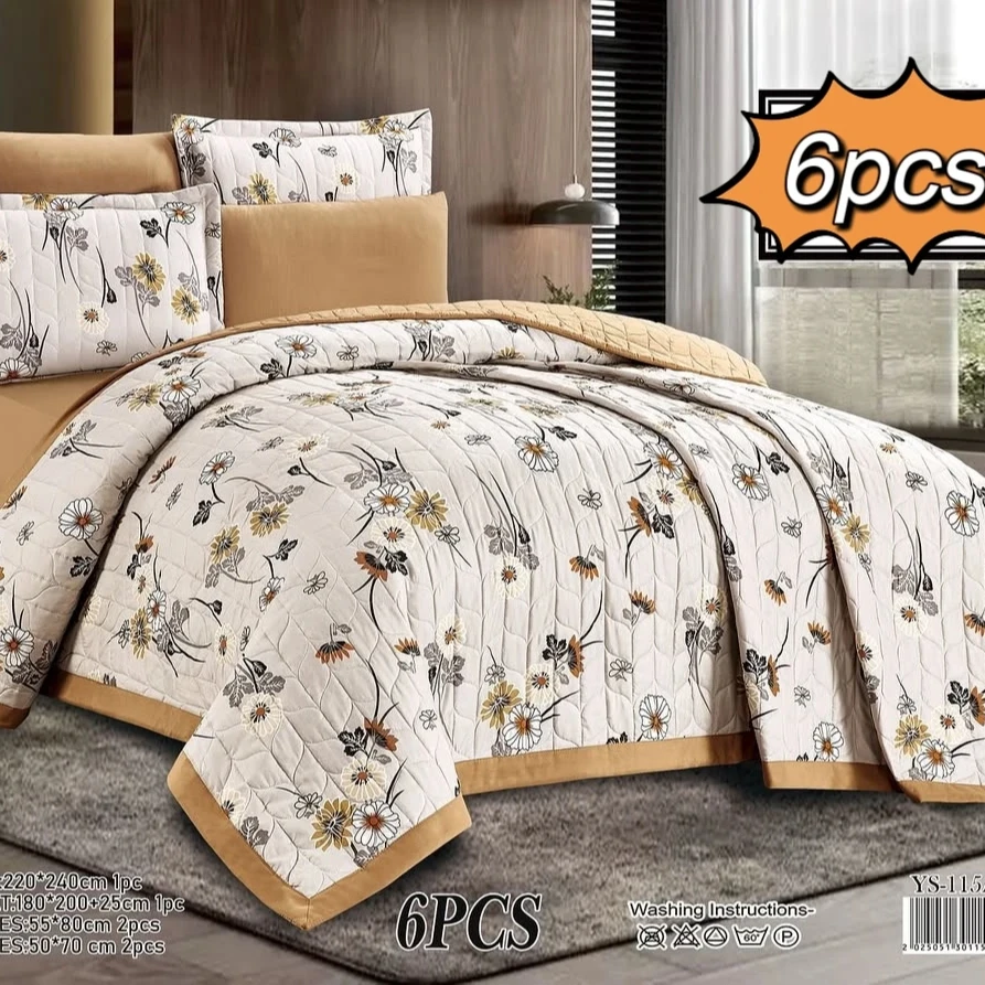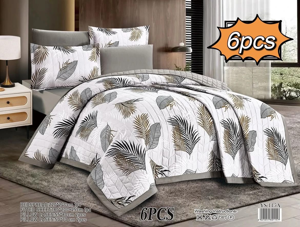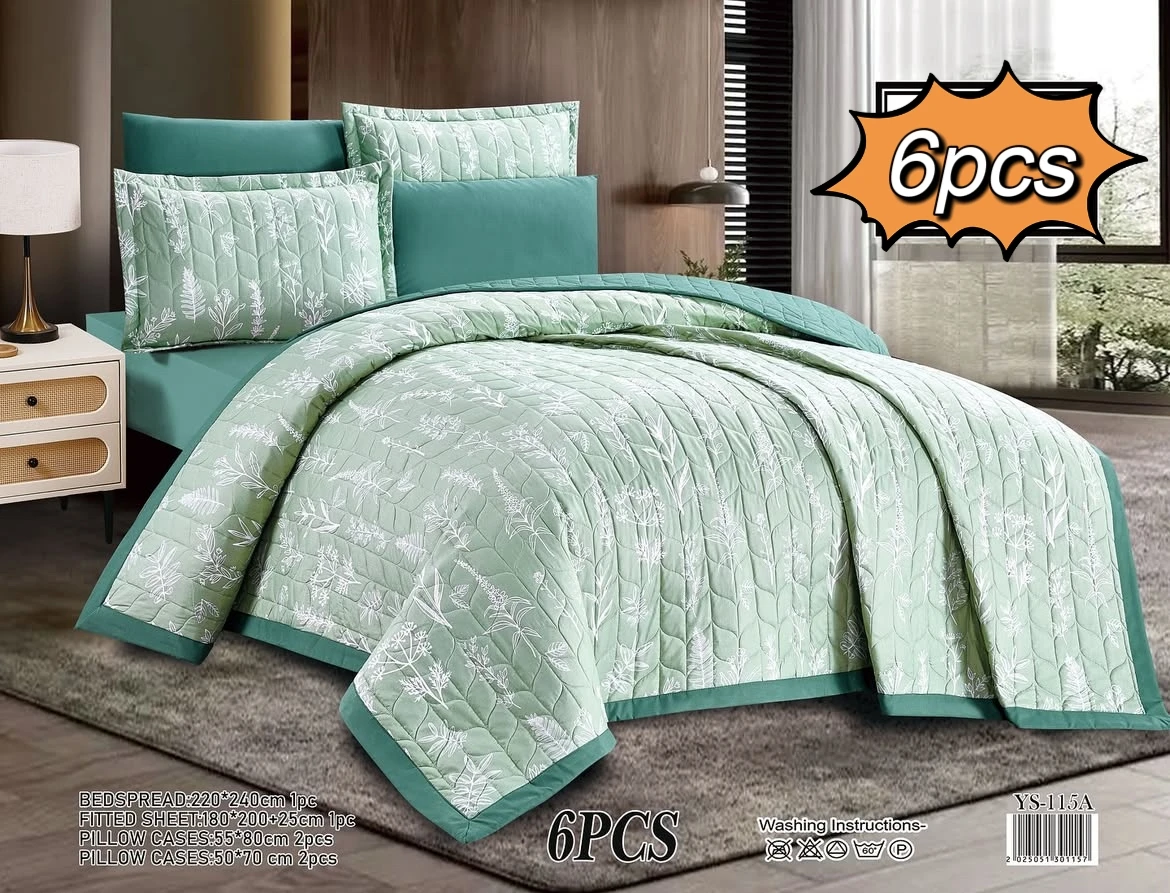 New Design 6 Pieces Summer Quilt Bed Spread Fitted Sheet Bedding Set With Pillowcases and Cushions