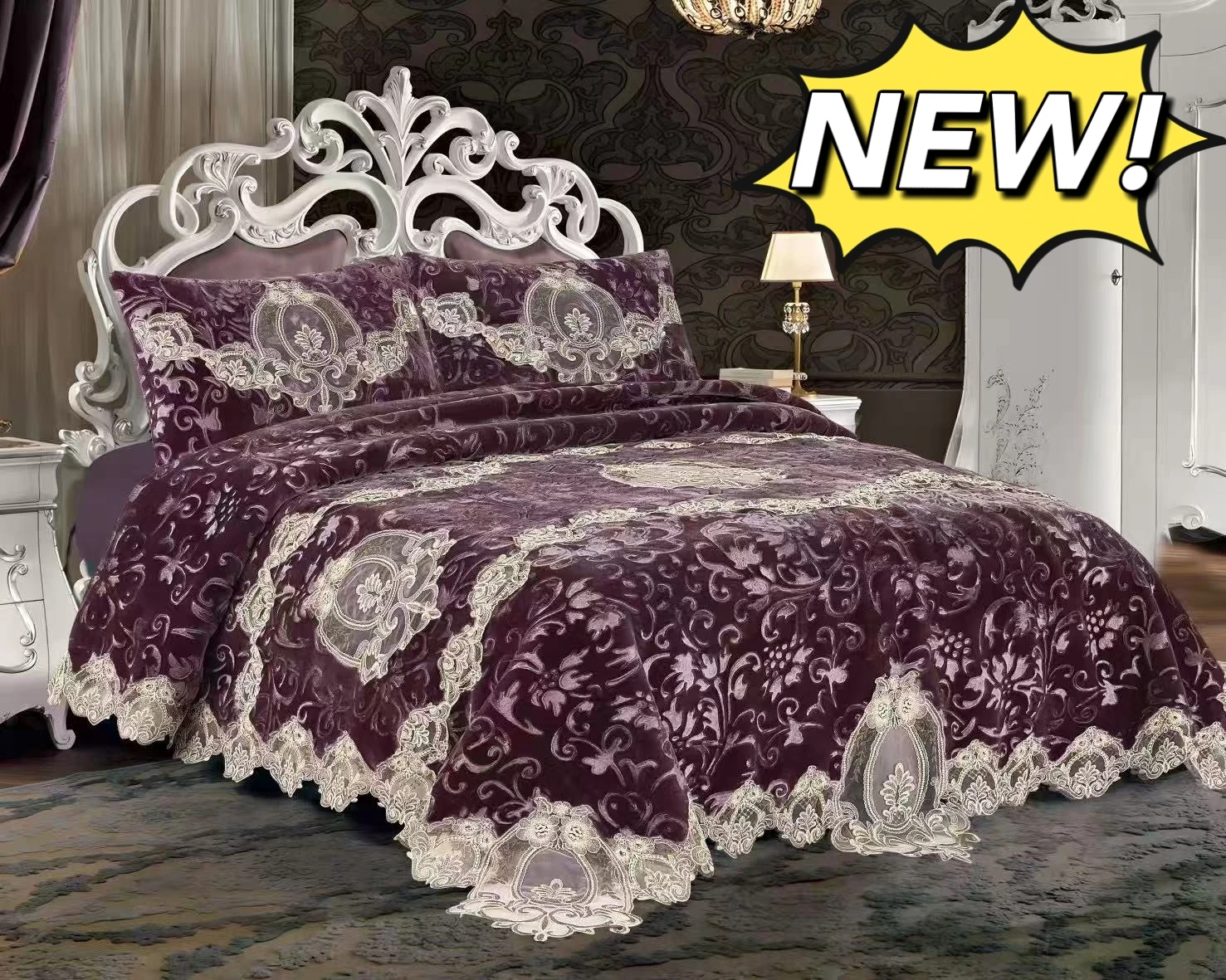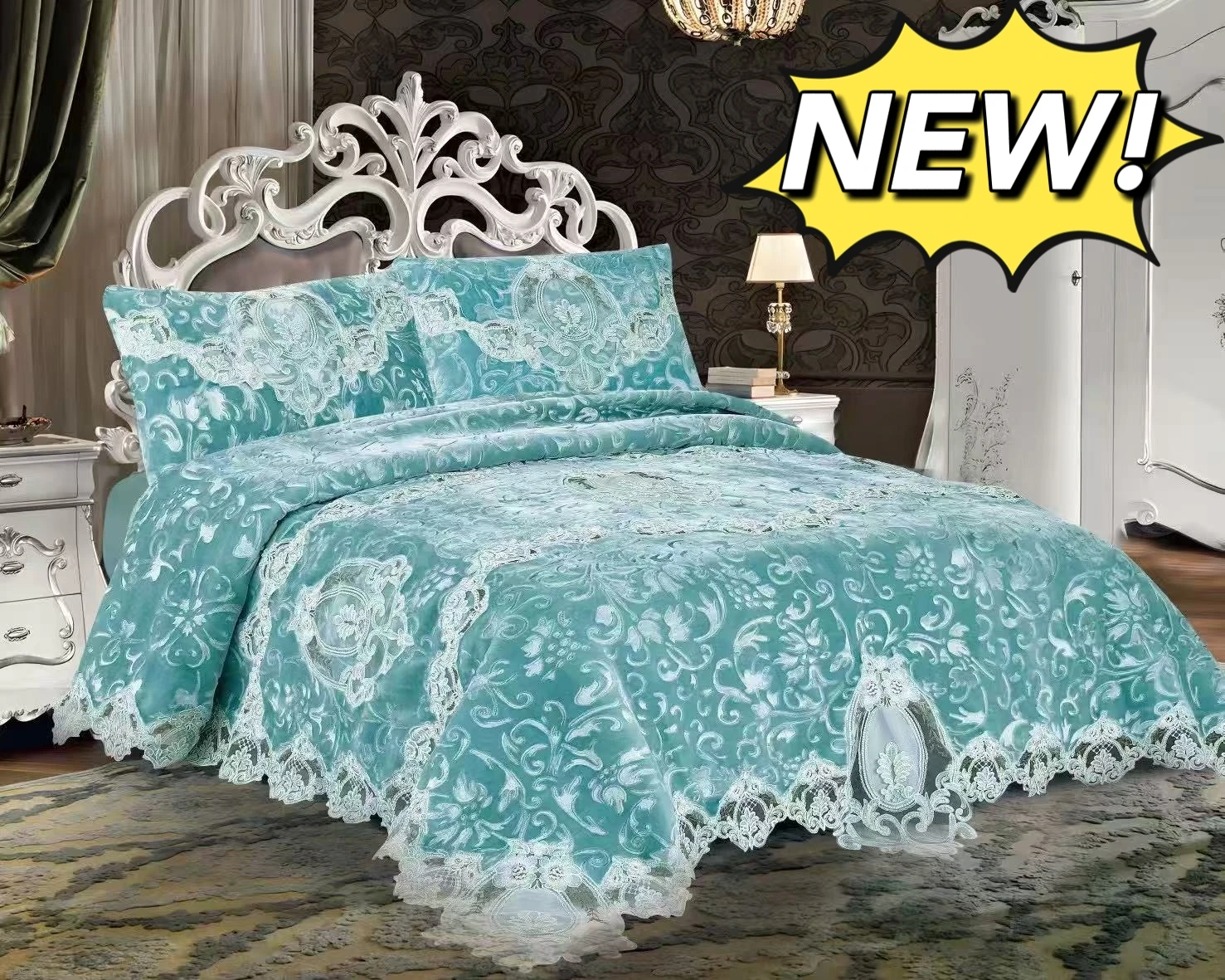 New Design 3 Piece High-end Lace Embroidery Pattern King Size Blanket Duvet Cover Set With Pillowcases