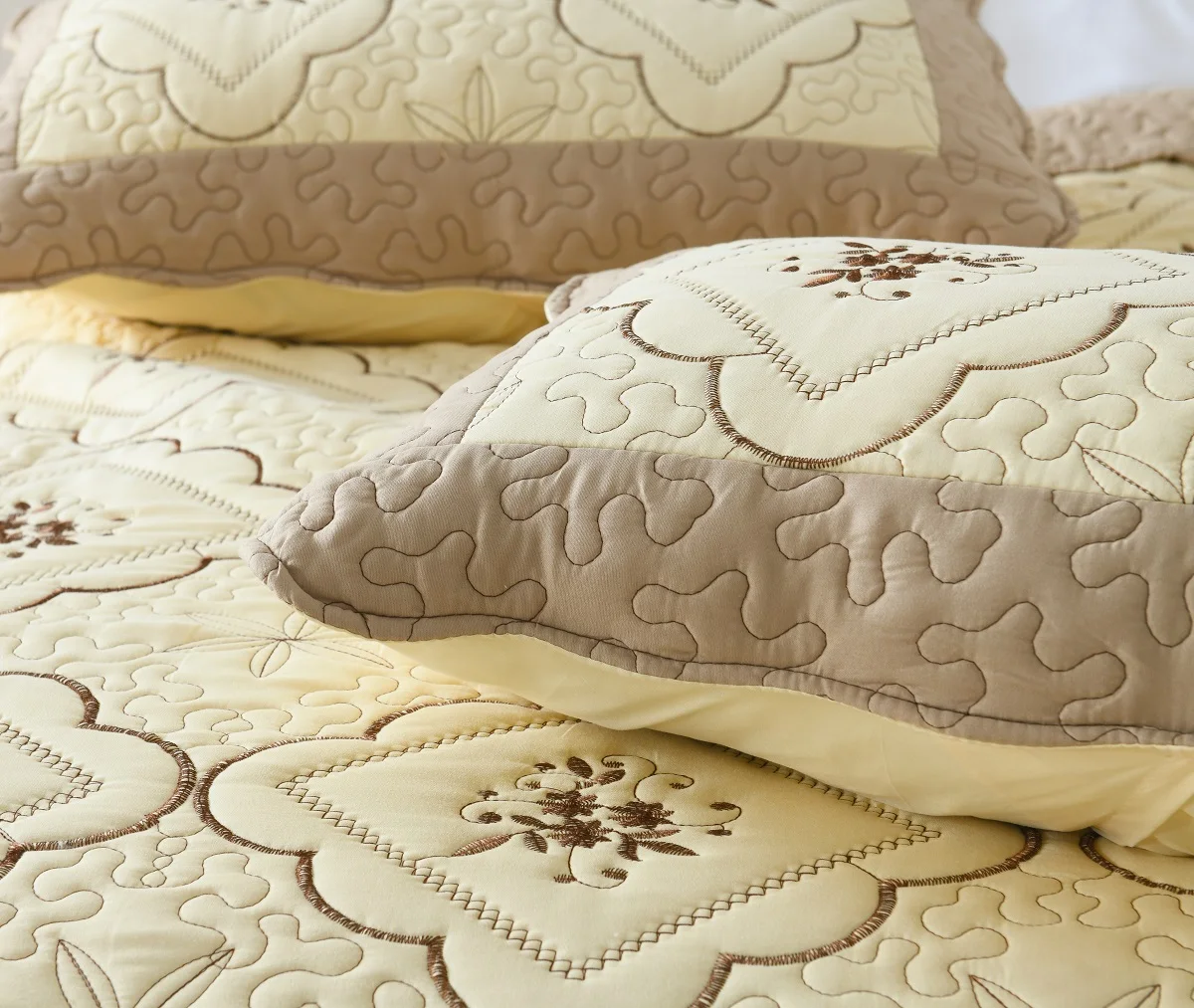High Quality King Size Luxury Bedspread Bed Skirt Set 3-Piece Custom Logo Embroidered Floral Patchwork Technique Cotton Filling