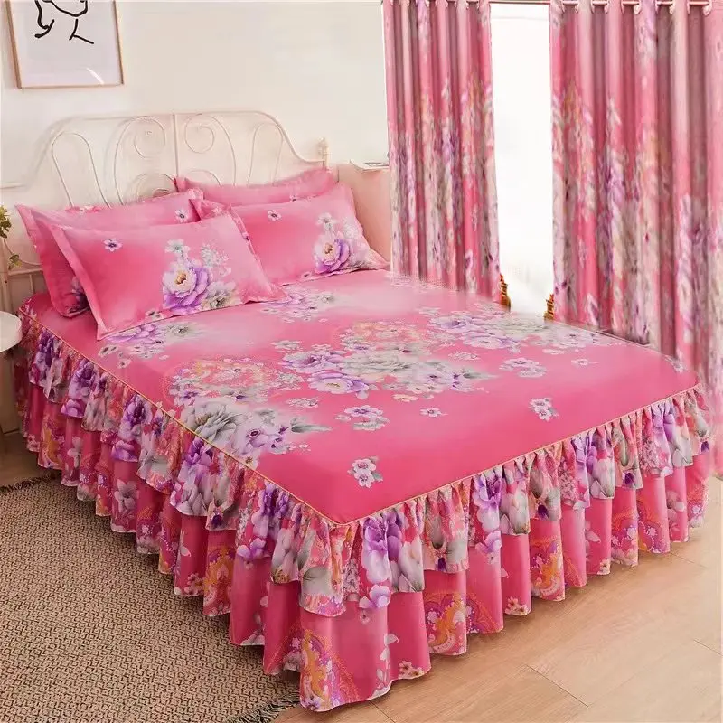 Hot Selling Microfiber Bedding Set with 5 Pieces Including King Size Curtain From China; Floral Embroidered Pattern for Home Use