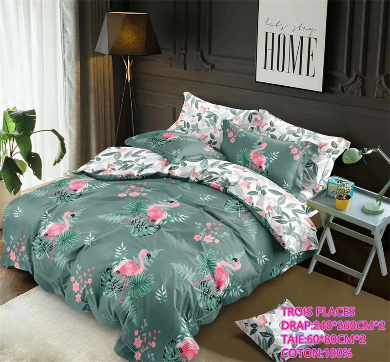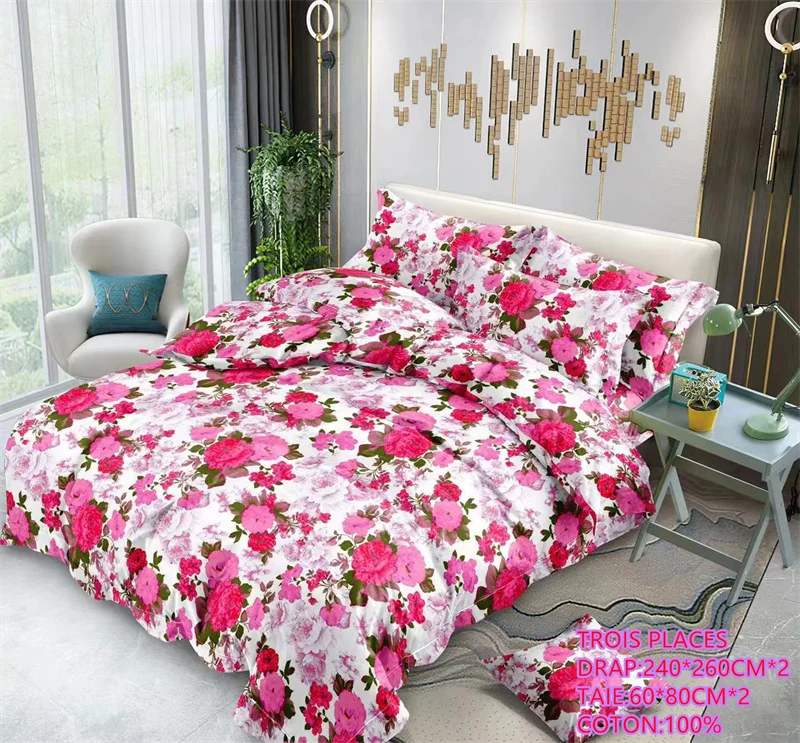 High Quality Cotton TROIS PLACES SET Floral Bedding with 2 Sheets and 2 Pillowcases Cooling & Disposable Folded 200TC