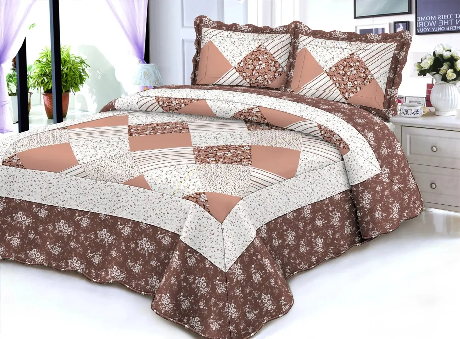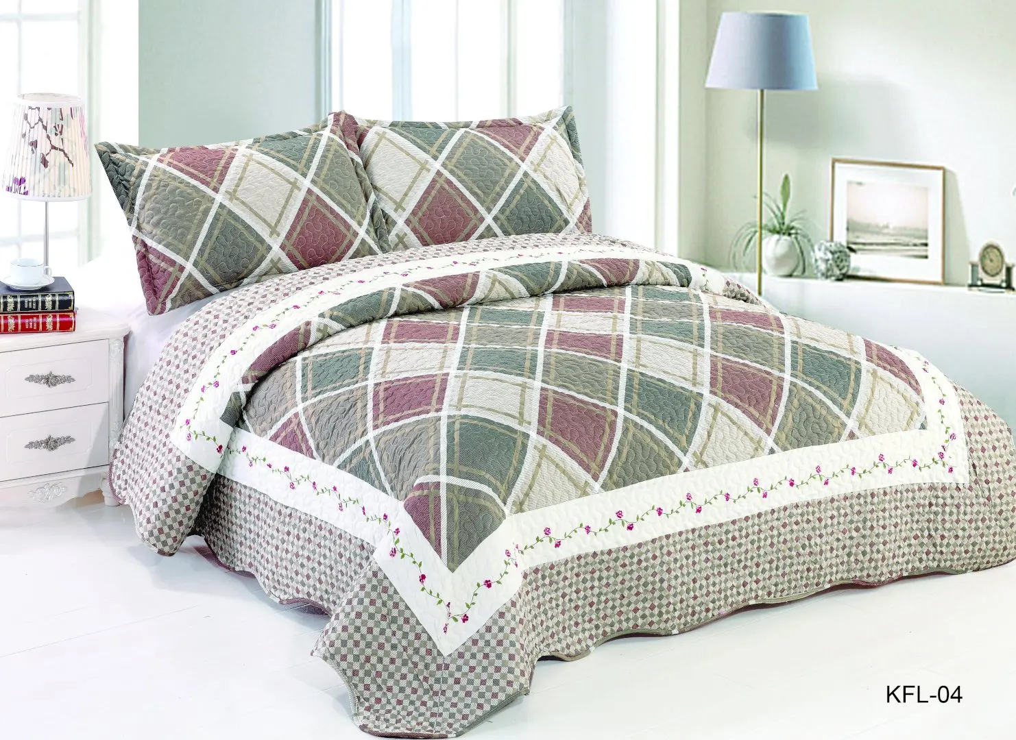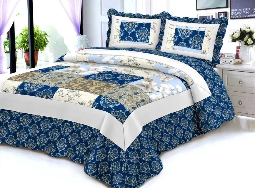 Italian American Style Quilted Bedspreads Microfiber Floral Pattern for Home Use