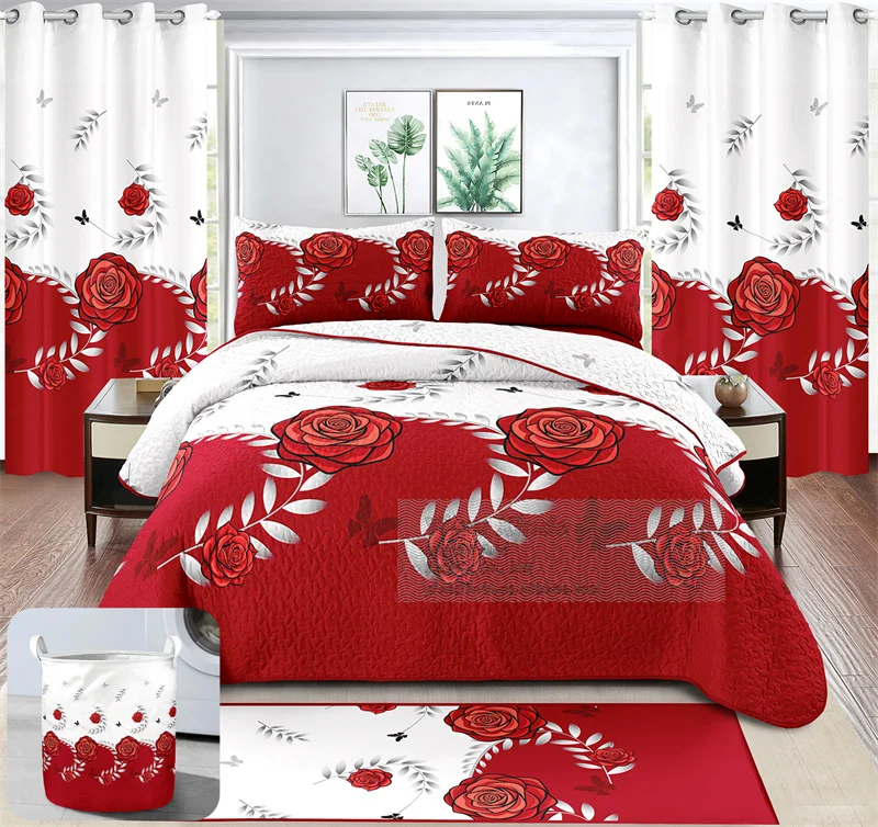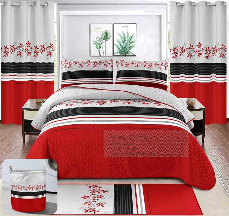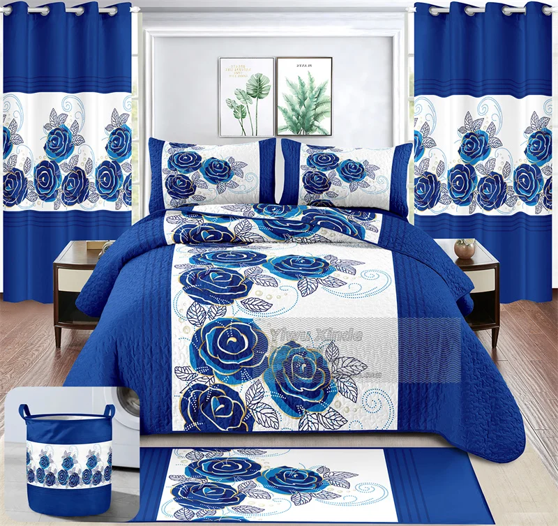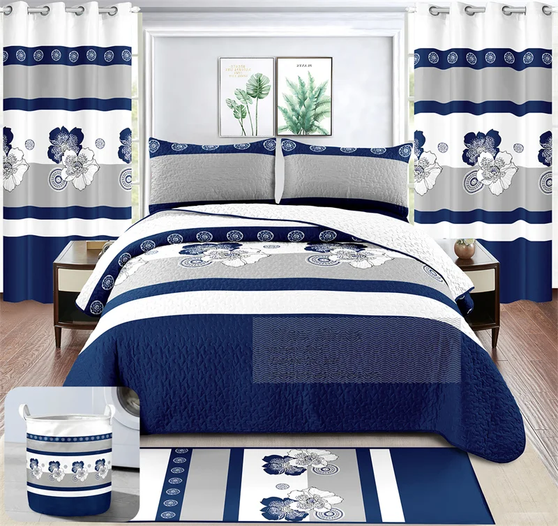8 Piece Luxury Bedding Set with Curtains Floor Mat Laundry Basket Comforter Pillowcases Hotel Home Textile Wholesale